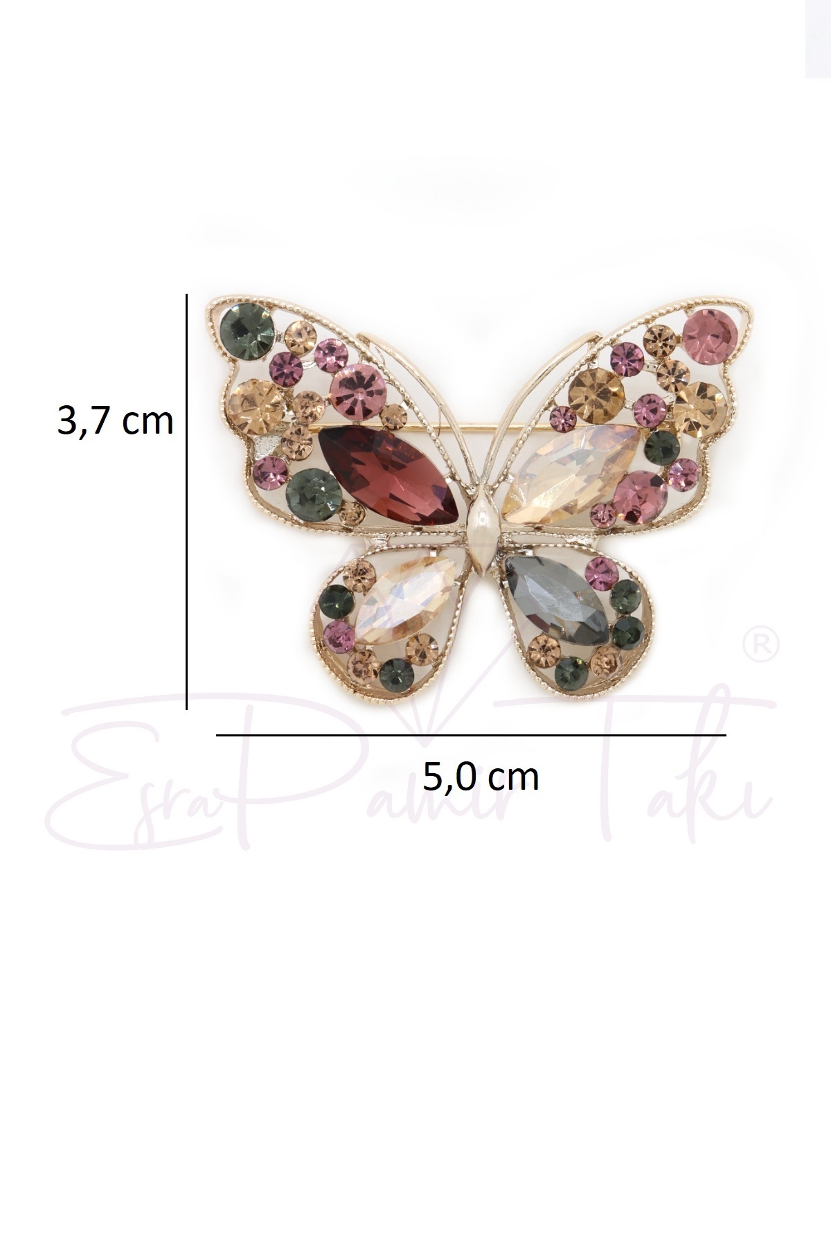 Pembe Ve Kehribar Renk Taşlı Gümüş Renk Kelebek Broş Pembe Ve Kehribar Renk Taşlı Gümüş Renk Kelebek Broş EP2767 تک سایز