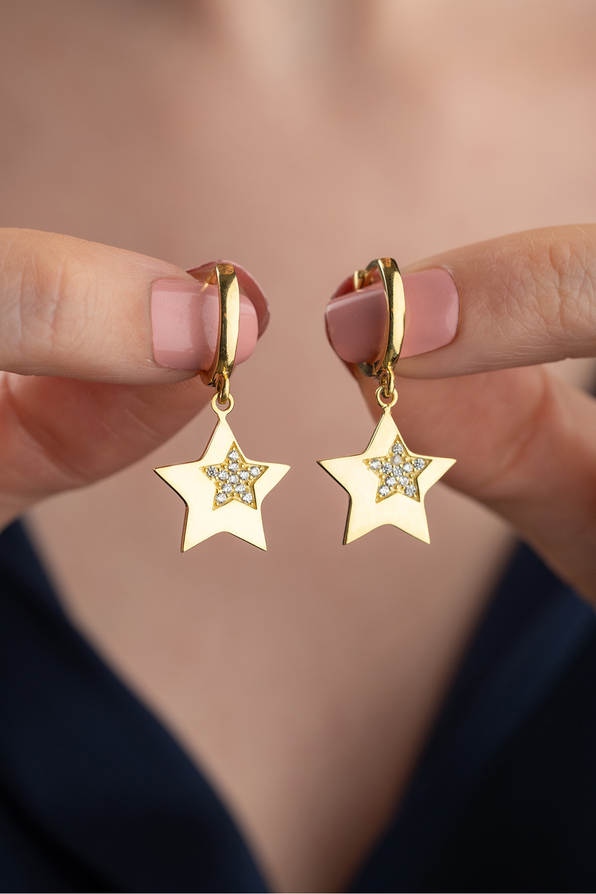 925 Ayar Gümüş Yıldız Küpe 925 Ayar Gümüş Yıldız Küpe SİLVANOJEWELRY00001429 تک سایز
