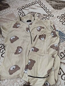 krem kahve ayıcık Desenli Kısa Kollu Düğmeli Biyeli Pijama Takım7856 krem kahve ayıcık Desenli Kısa Kollu Düğmeli Biyeli Pijama Takım7856 5XL
