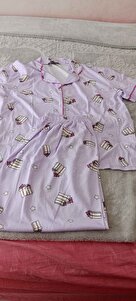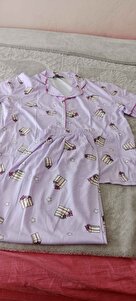 lila hediye kutusu Desenli Kısa Kollu Düğmeli Biyeli Pijama Takım7856 lila hediye kutusu Desenli Kısa Kollu Düğmeli Biyeli Pijama Takım7856 5XL