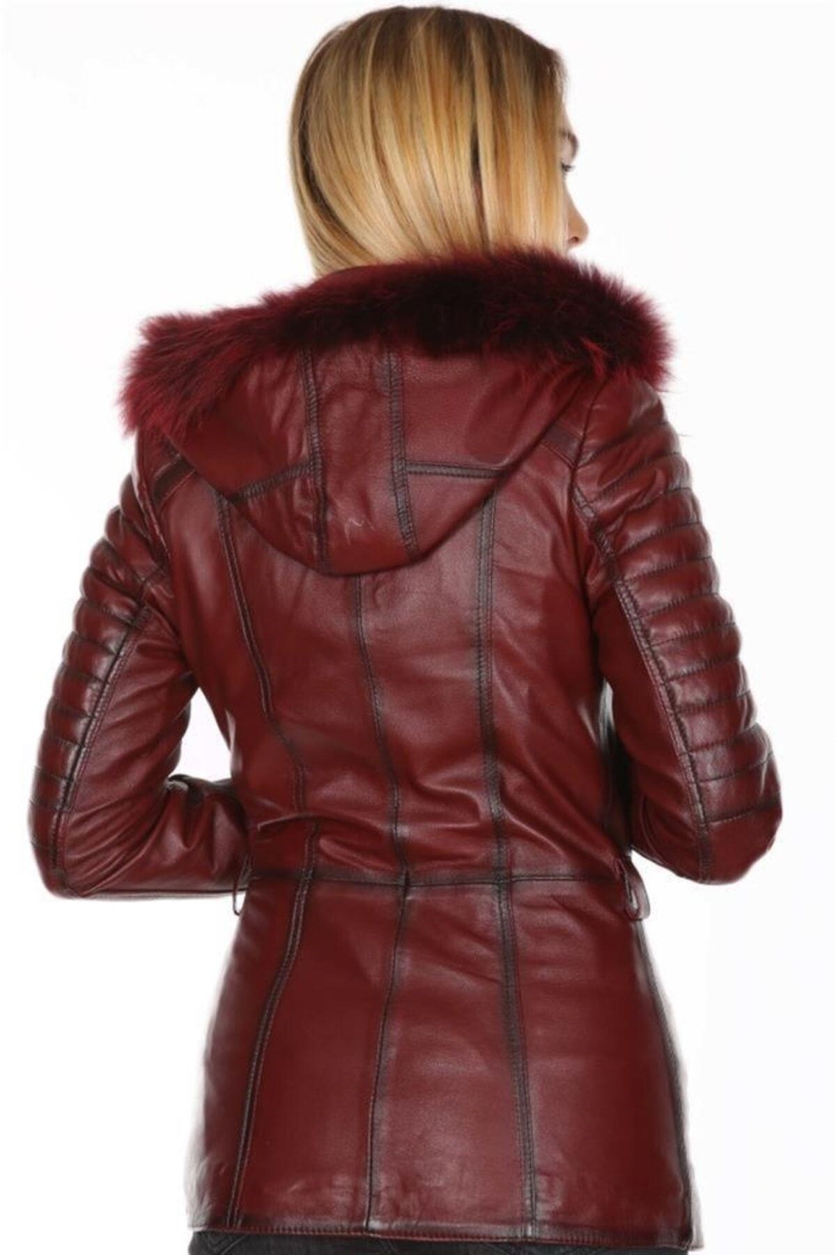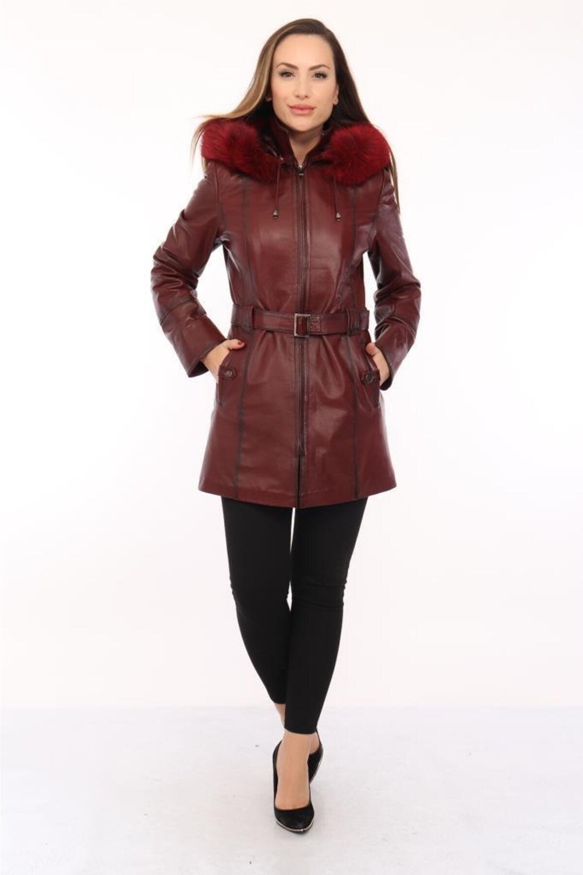 Hakiki Kuzu Derisi Fermuarlı Kadın Kürklü Ceket Bordo Hakiki Kuzu Derisi Fermuarlı Kadın Kürklü Ceket Bordo dw-04-48-17 3XL