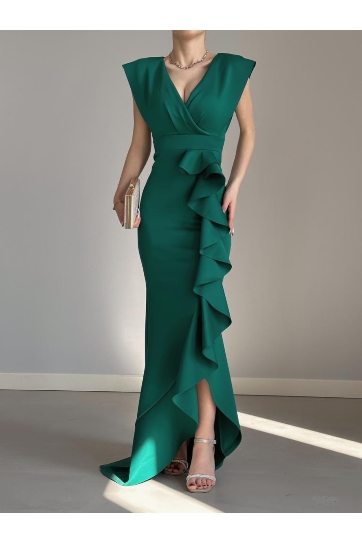 Fuşya Kruvaze Yaka Volanlı Yırtmaç Detay Scuba Kumaş Balık Abiye Elbise Fuşya Kruvaze Yaka Volanlı Yırtmaç Detay Scuba Kumaş Balık Abiye Elbise DFX582443 L