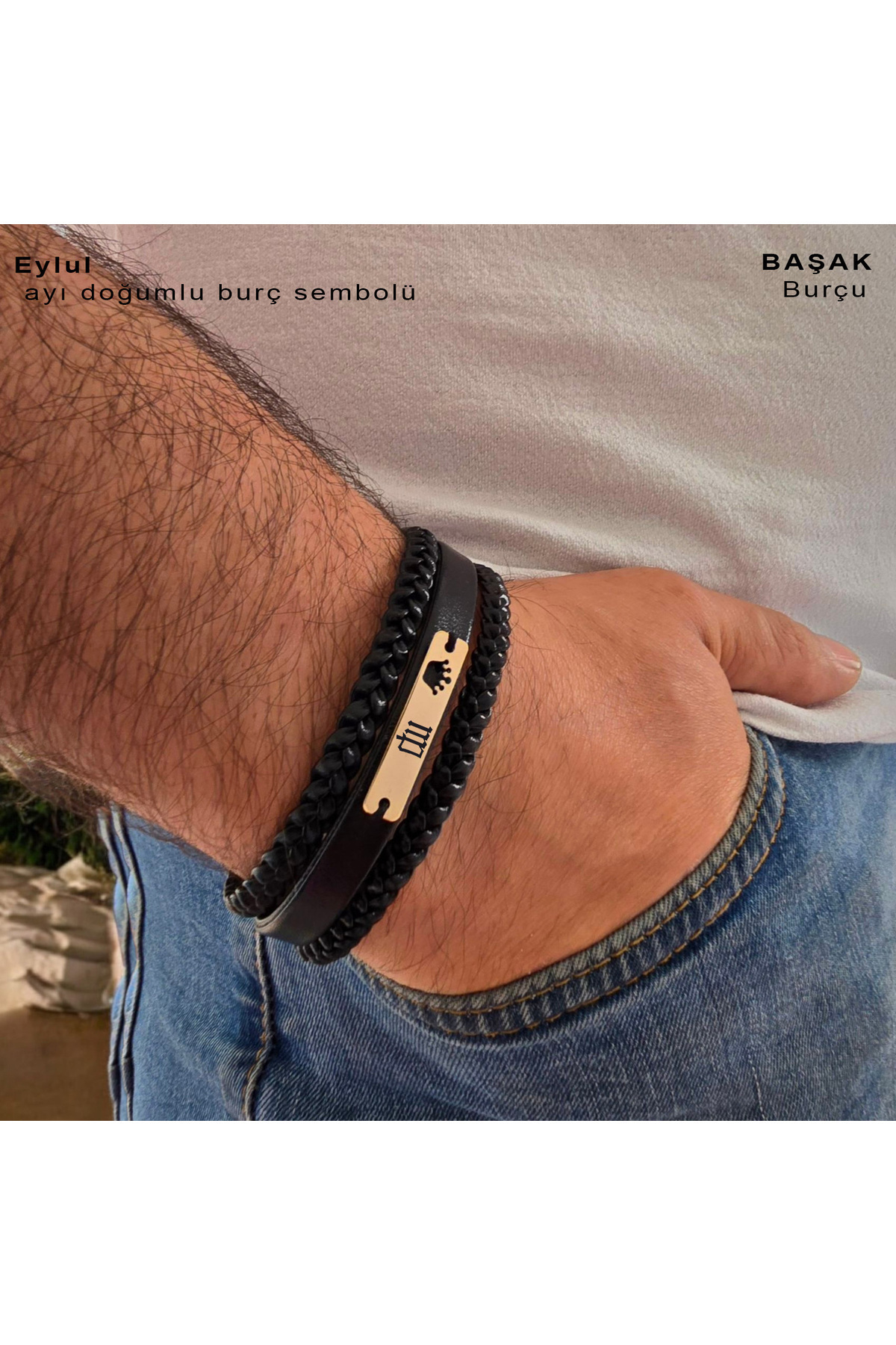 14 Ayar Altın Plakalı Dikdörtgen Figürlü Özgün Derili Erkeklere Özel Doğum Ay Bilekliği-397ay-siyah 14 Ayar Altın Plakalı Dikdörtgen Figürlü Özgün Derili Erkeklere Özel Doğum Ay Bilekliği-397ay-siyah 397-kahkarderi-lumg-MO5 22 cm
