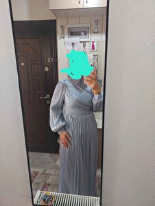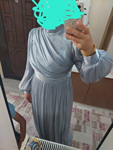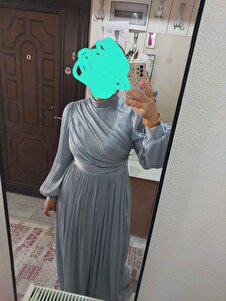 Drape Detaylı Gri Tesettür Abiye Elbise 44081GR Drape Detaylı Gri Tesettür Abiye Elbise 44081GR OZD-44081 54