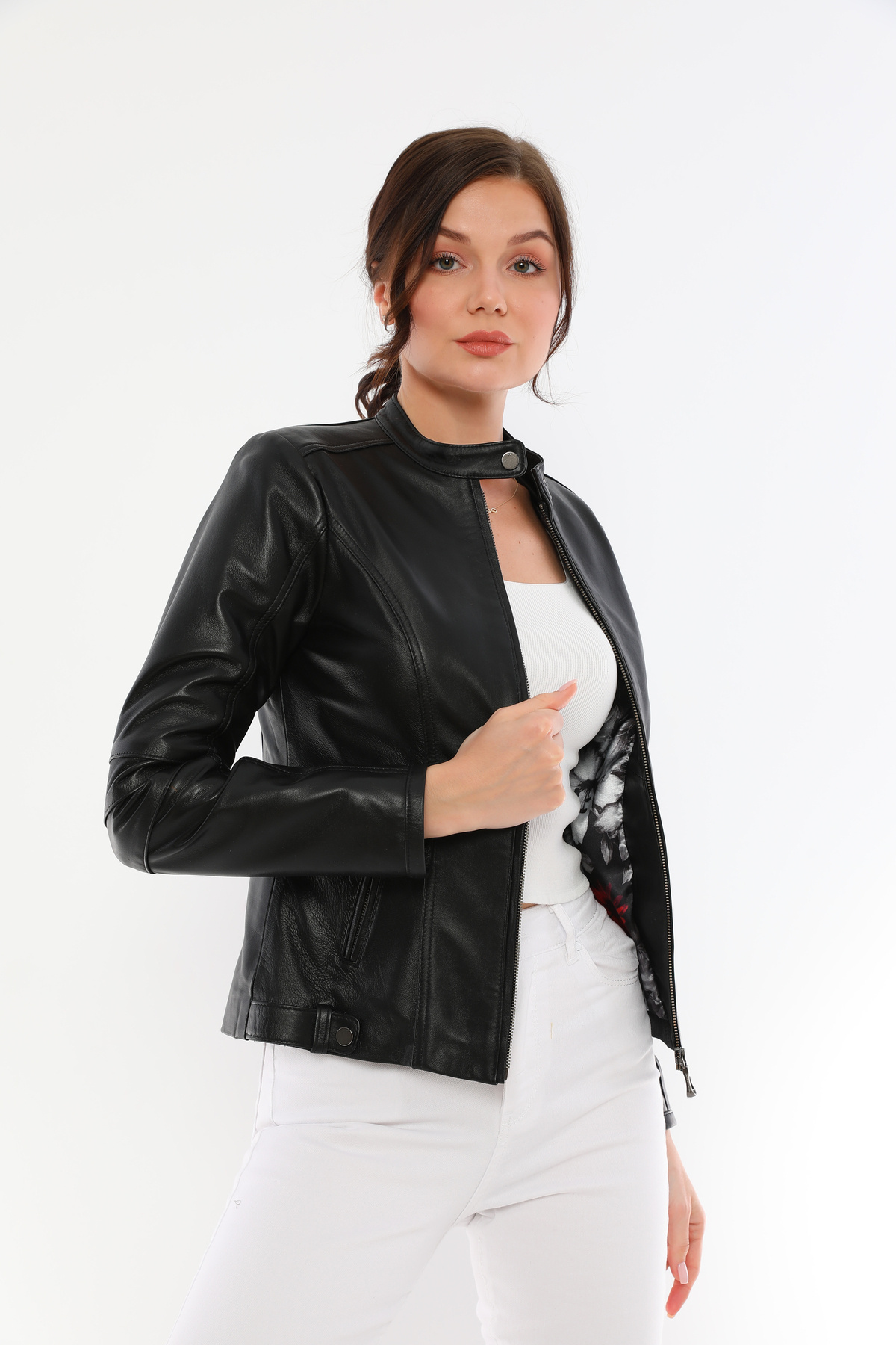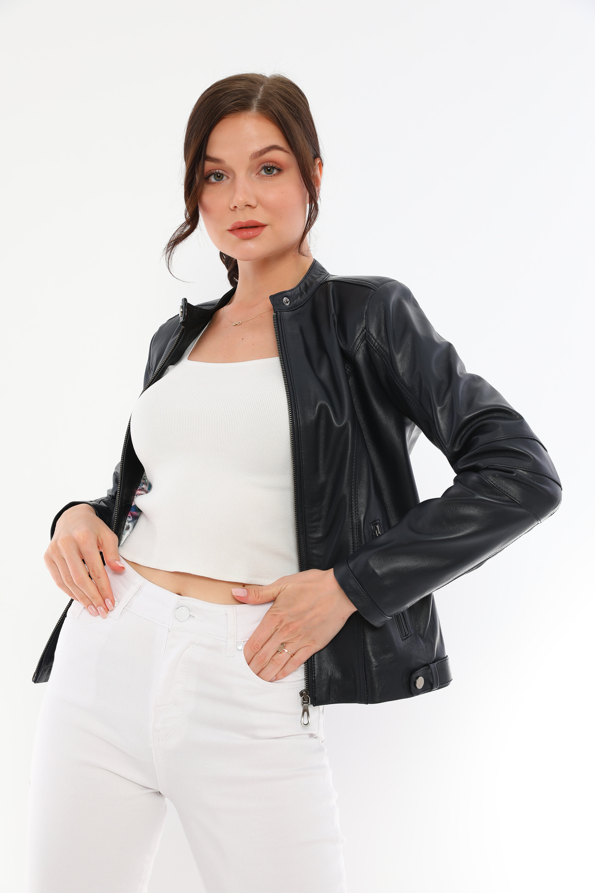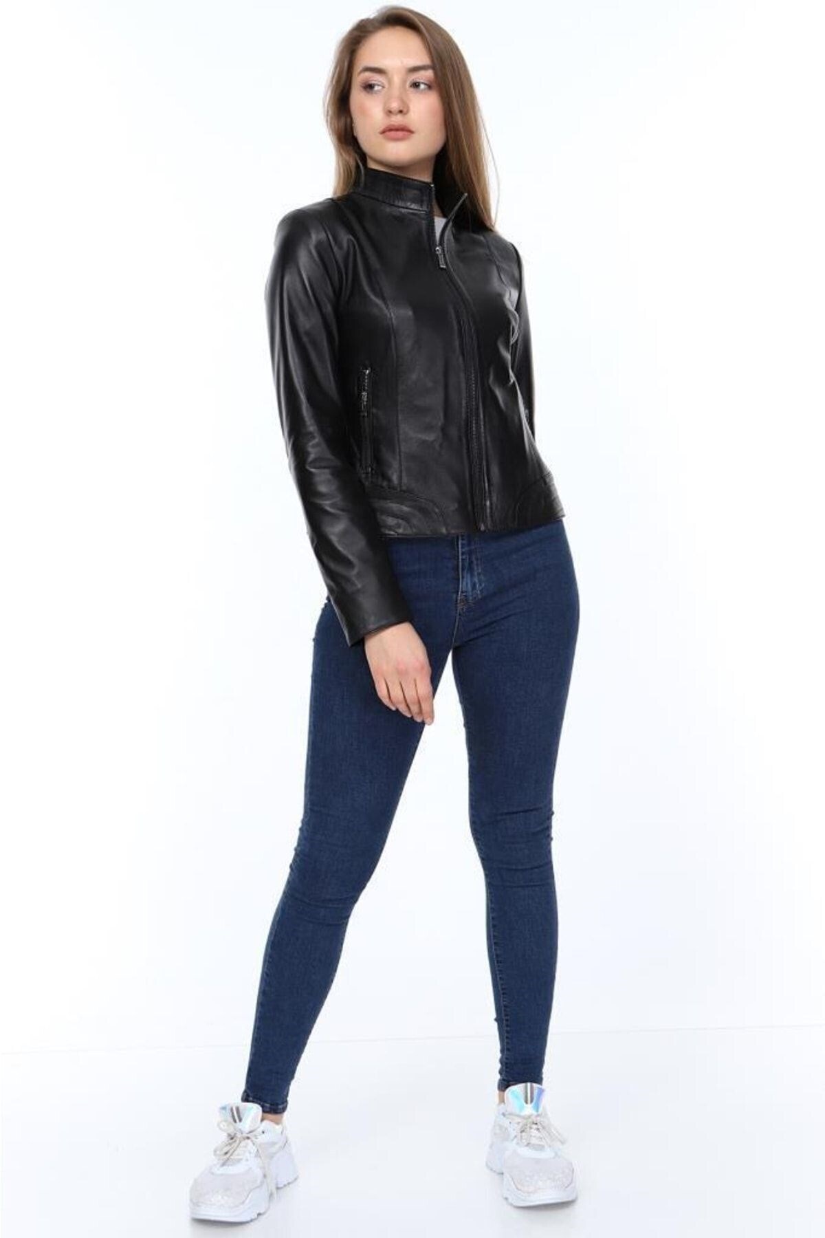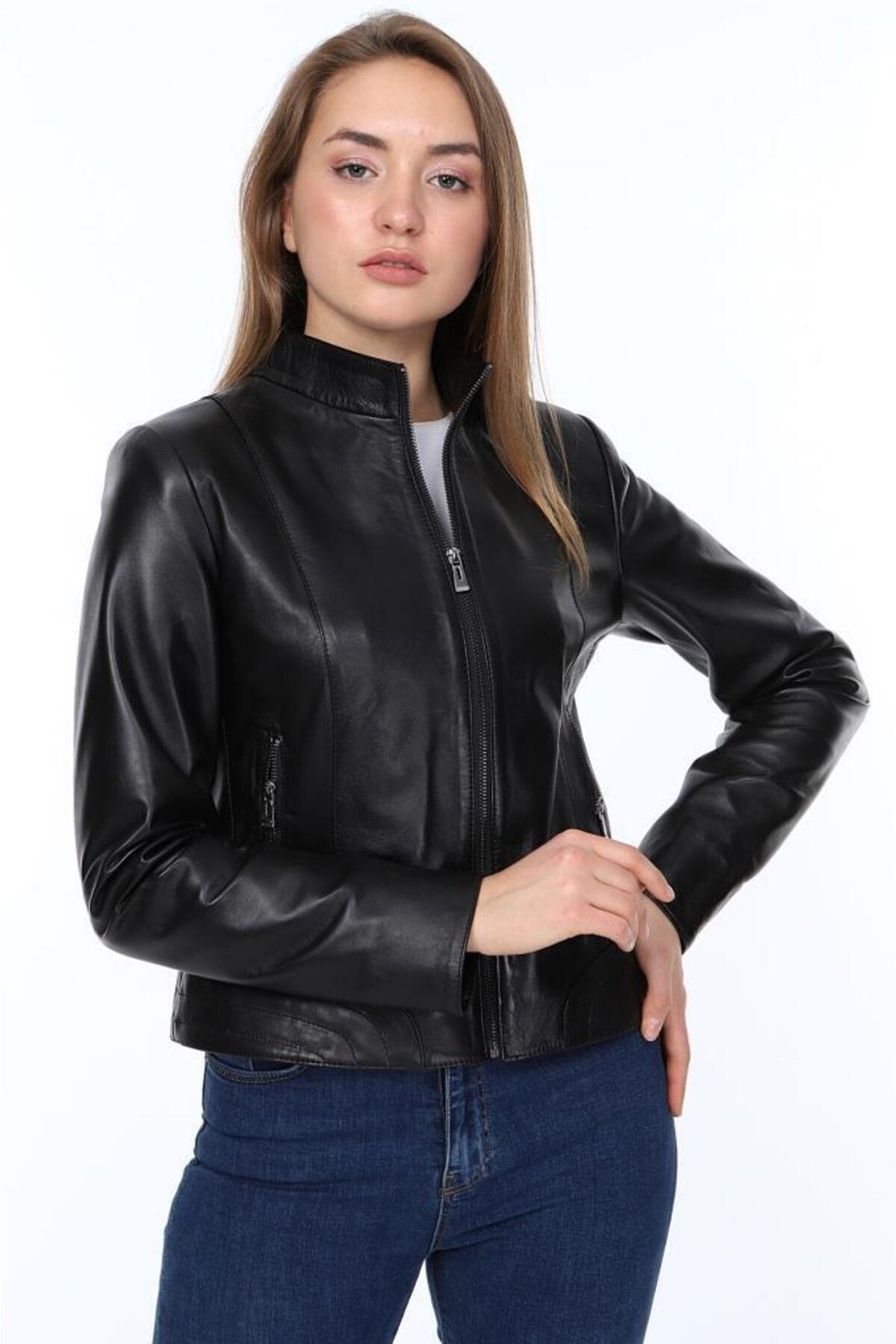 Hakiki Kuzu Derisi Fermuarlı Kısa Kadın Ceket Siyah Hakiki Kuzu Derisi Fermuarlı Kısa Kadın Ceket Siyah dw-04-11-57 XL