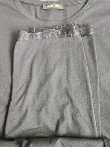 siyah Dantel Detaylı Bisiklet Yaka Örme Pijama Takım siyah Dantel Detaylı Bisiklet Yaka Örme Pijama Takım 7857 5XL
