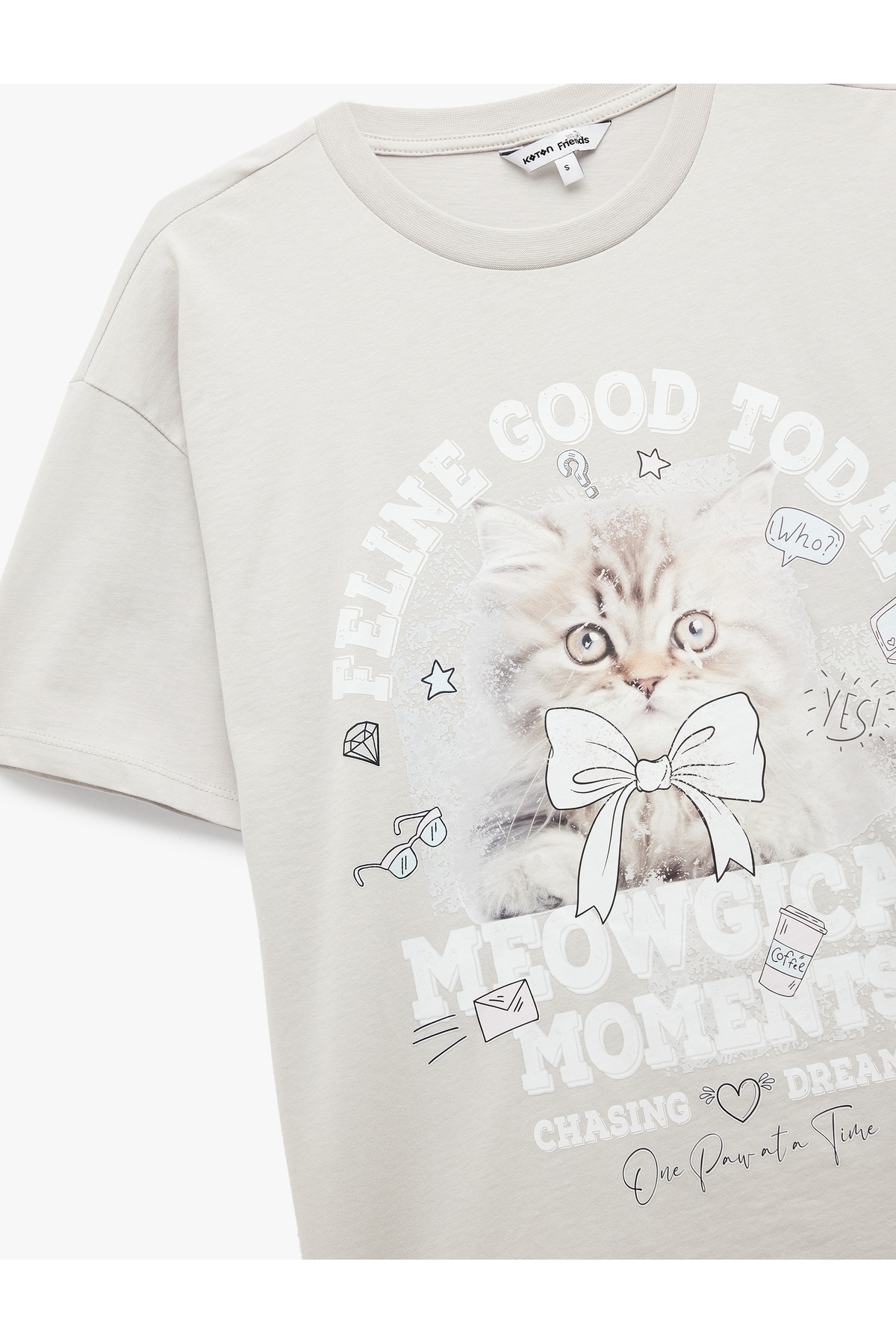 Kısa Kollu Bisiklet Yaka Baskılı Pamuklu Tişört Kısa Kollu Bisiklet Yaka Baskılı Pamuklu Tişört 5SAL10790IK XL