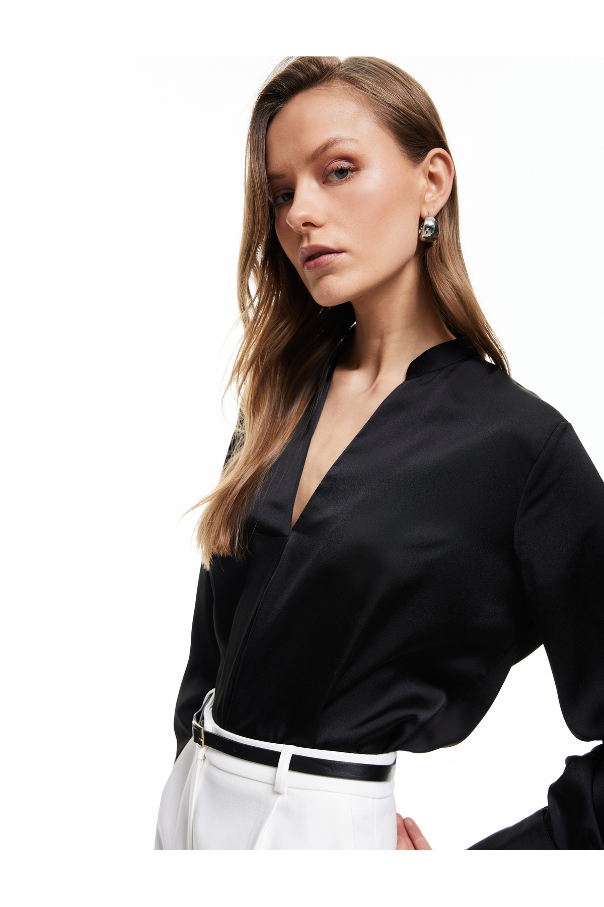 Kaçık Yaka Uzun Kollu Saten Bluz Kaçık Yaka Uzun Kollu Saten Bluz 5SAK60006UW 44