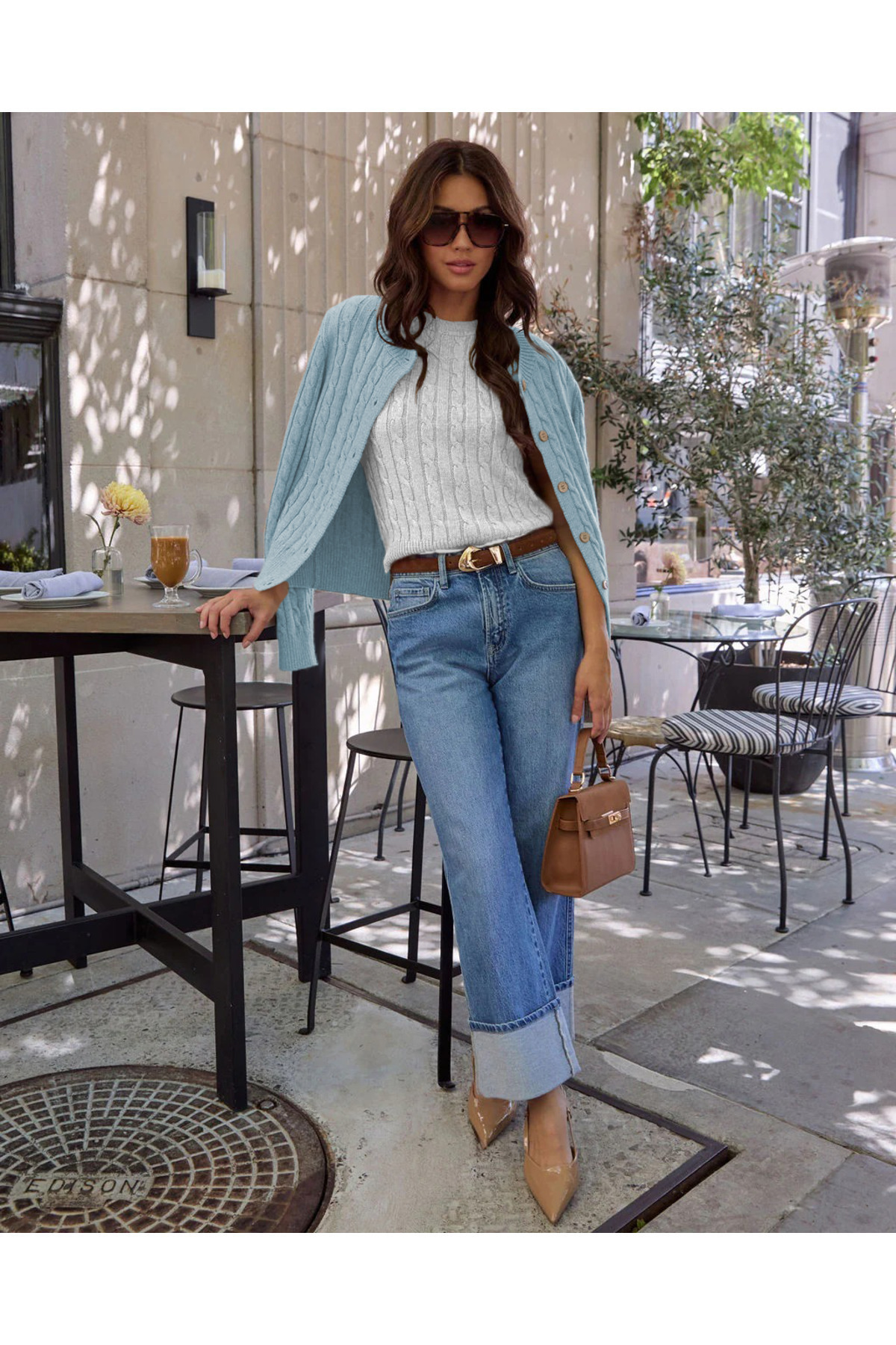 Kısa Kollu Ajurlu Yazlık Düğmeli V Yaka Örgü Mint Hırka Kısa Kollu Ajurlu Yazlık Düğmeli V Yaka Örgü Mint Hırka TR-22300 2XL