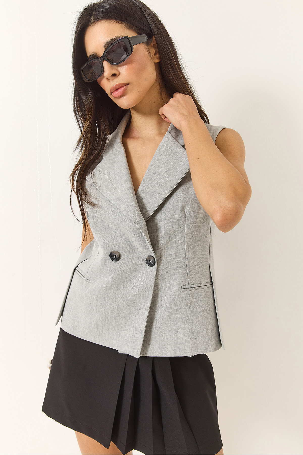 Kadın Şal Yaka Asimetrik Kesim Yelek 60429 60283003 Kadın Şal Yaka Asimetrik Kesim Yelek 60429 60283003 L
