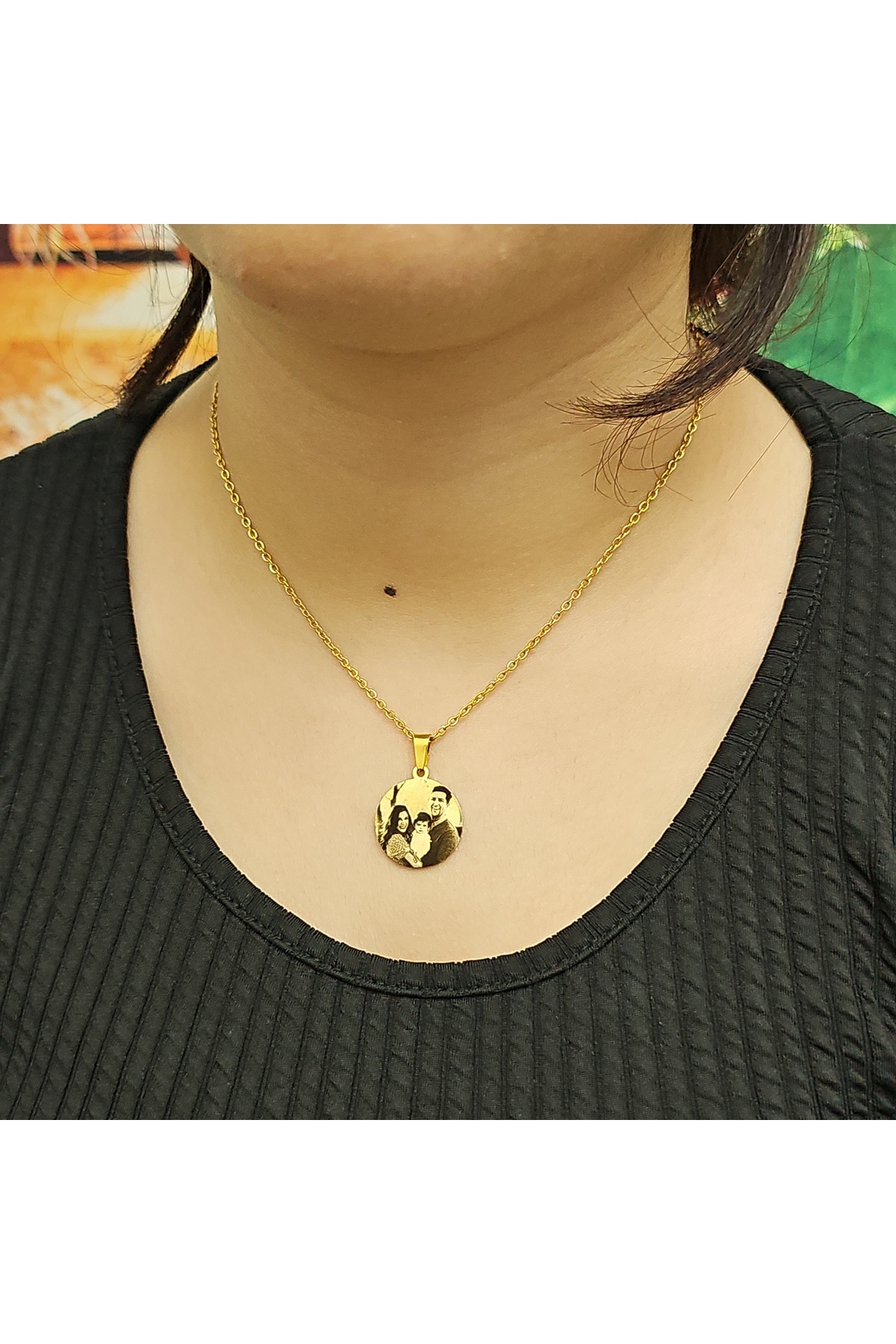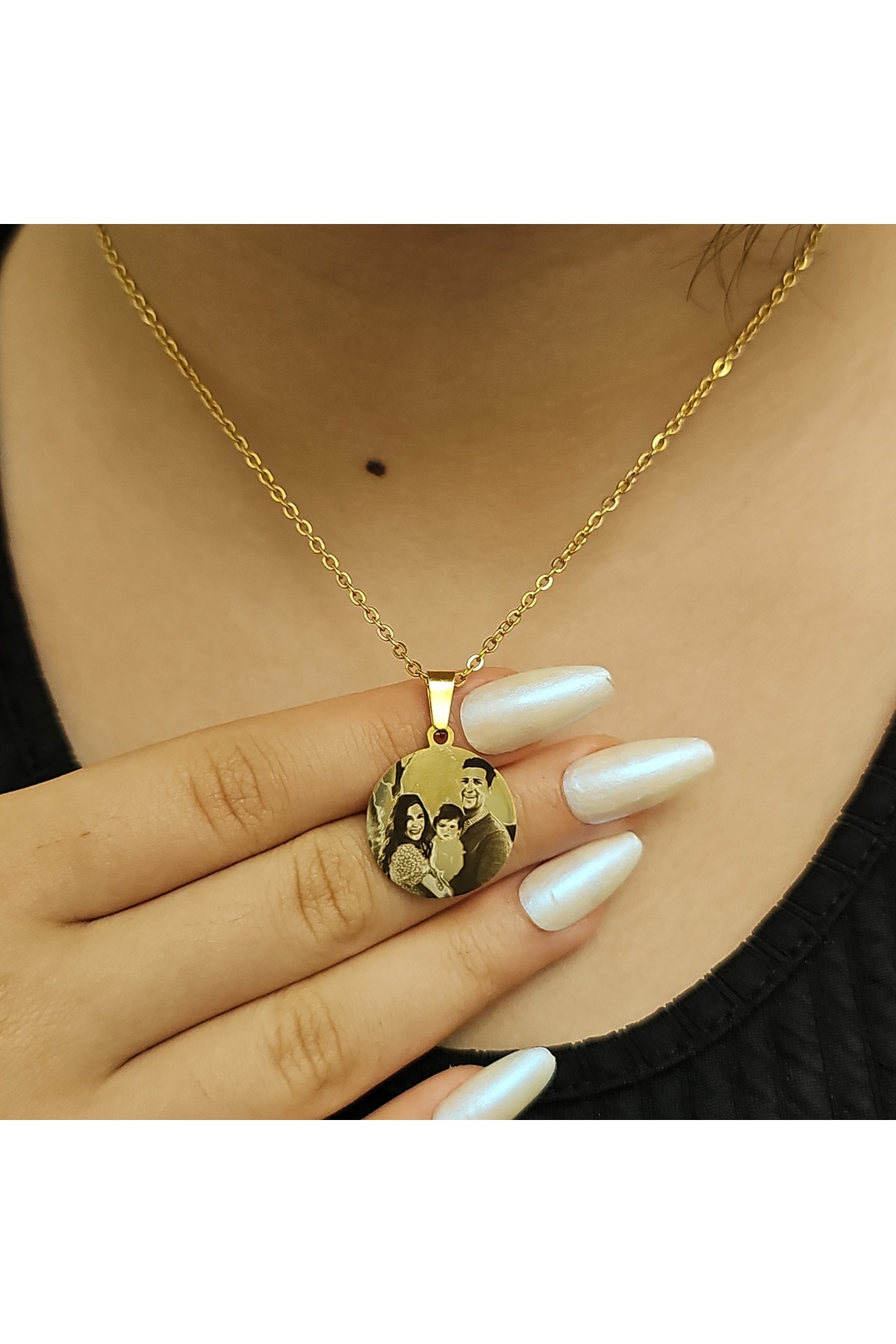 Kişiye Özel Resimli Kolye, Siyah Beyaz Resim, Yuvarlak Model, Gold Renk, Paslanmaz Çelik Kişiye Özel Resimli Kolye, Siyah Beyaz Resim, Yuvarlak Model, Gold Renk, Paslanmaz Çelik K110 55