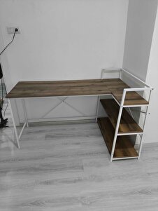 Çam/Beyaz Çift Yön Kullanıma Uygun, Raflı Çalışma Masası, Bilgisayar Masası, L Masa Çam/Beyaz Çift Yön Kullanıma Uygun, Raflı Çalışma Masası, Bilgisayar Masası, L Masa FLN15010OOSBD تک سایز