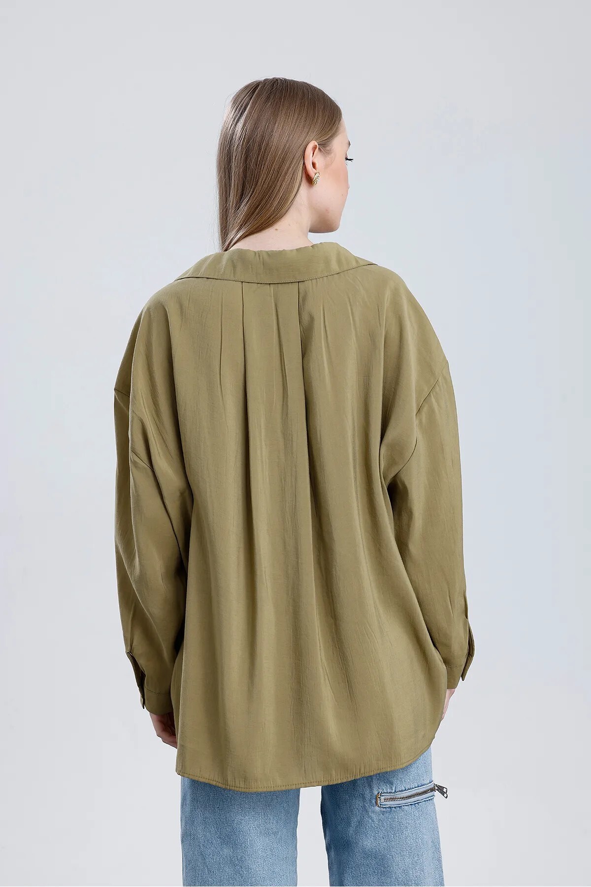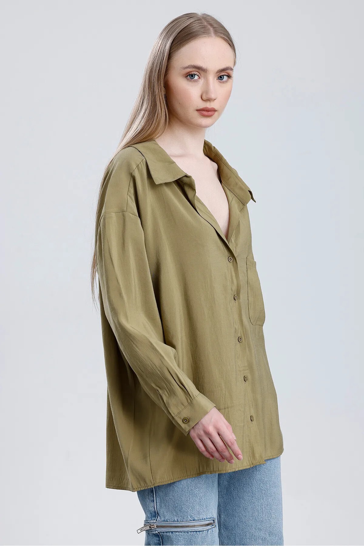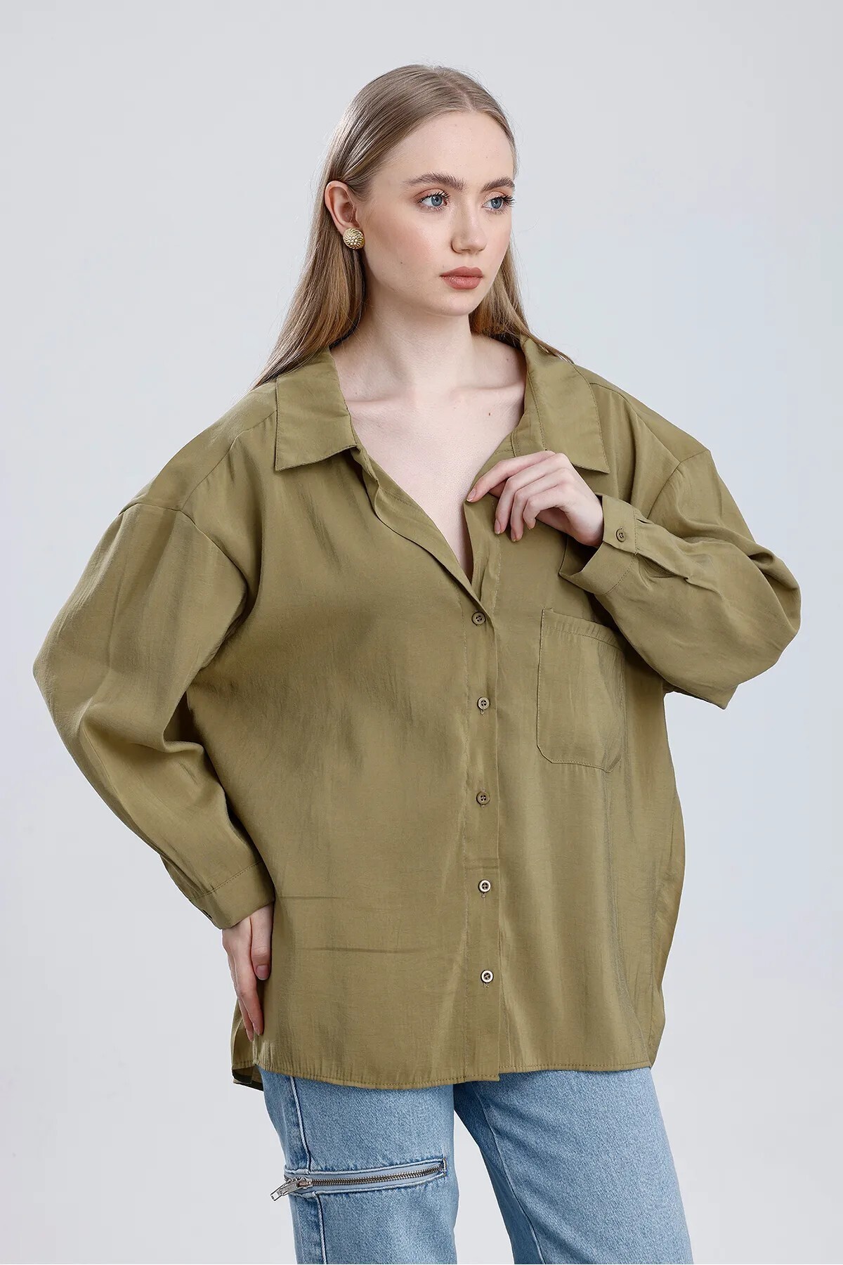 Oversize Modal Cepli Uzun Kollu Gömlek Yağ Yeşili Oversize Modal Cepli Uzun Kollu Gömlek Yağ Yeşili 002562 Standart