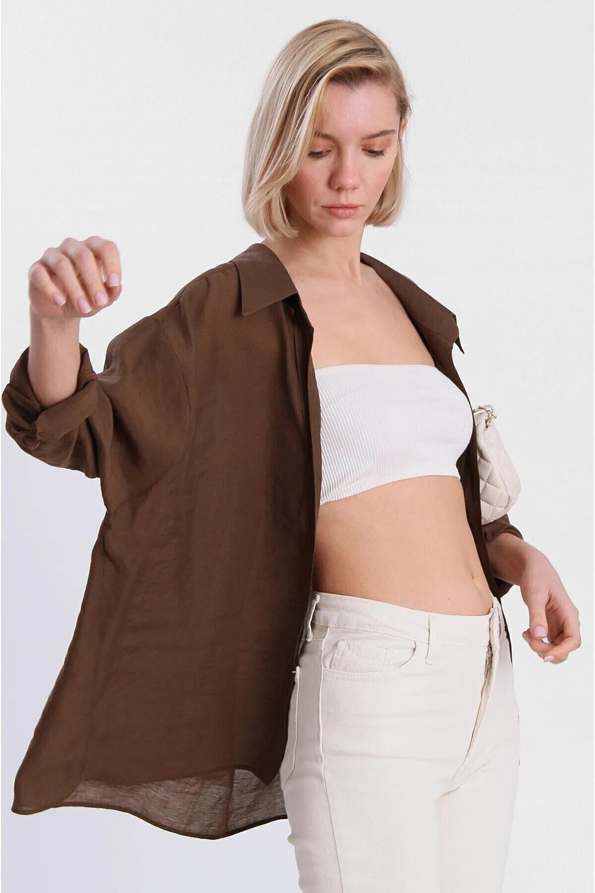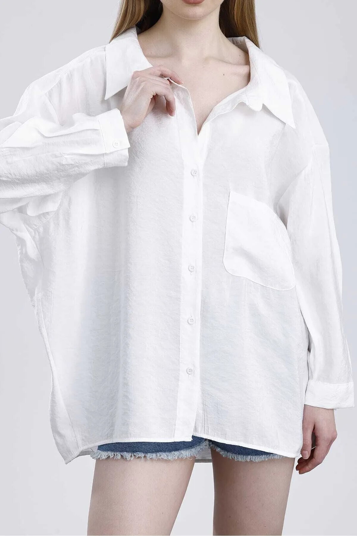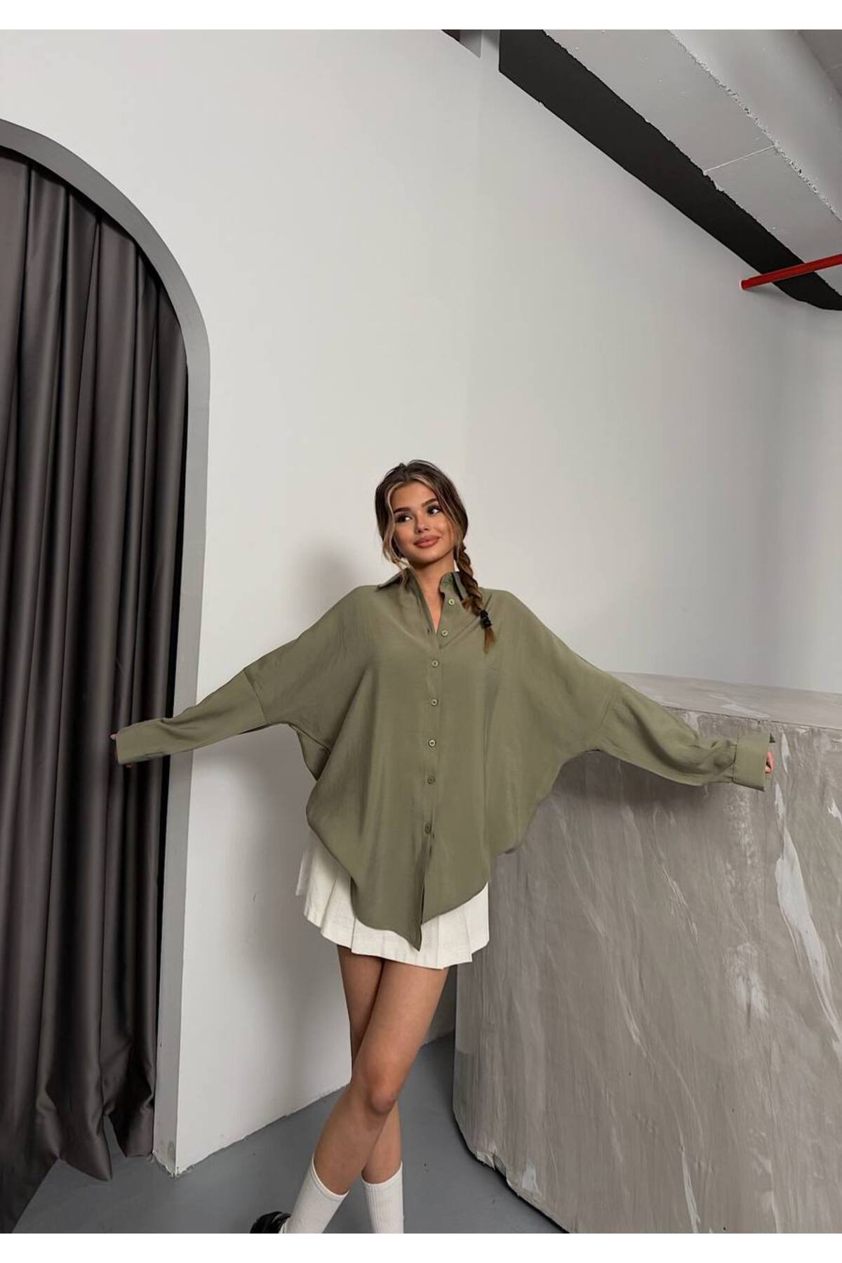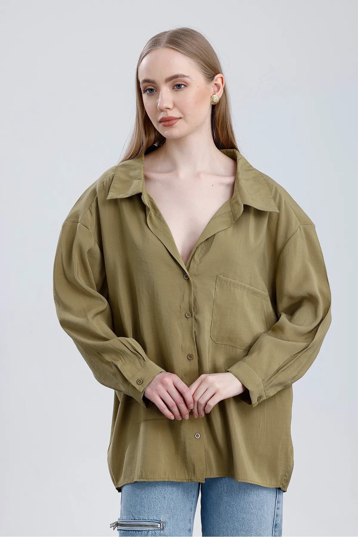 Oversize Modal Cepli Uzun Kollu Gömlek Yağ Yeşili Oversize Modal Cepli Uzun Kollu Gömlek Yağ Yeşili 002562 Standart