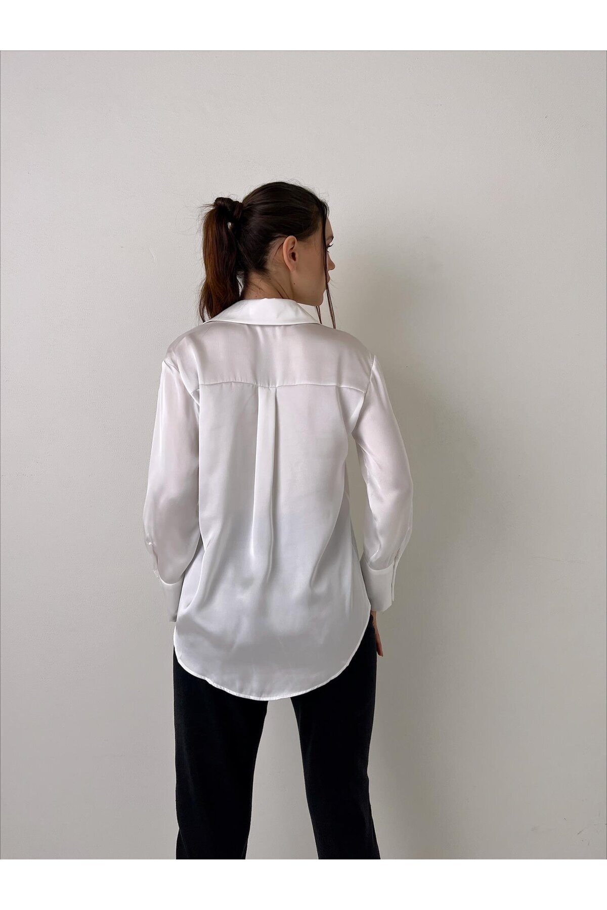 Kadın Beyaz Düğmeli Mevsimlik Saten Gömlek Kadın Beyaz Düğmeli Mevsimlik Saten Gömlek rb302 L