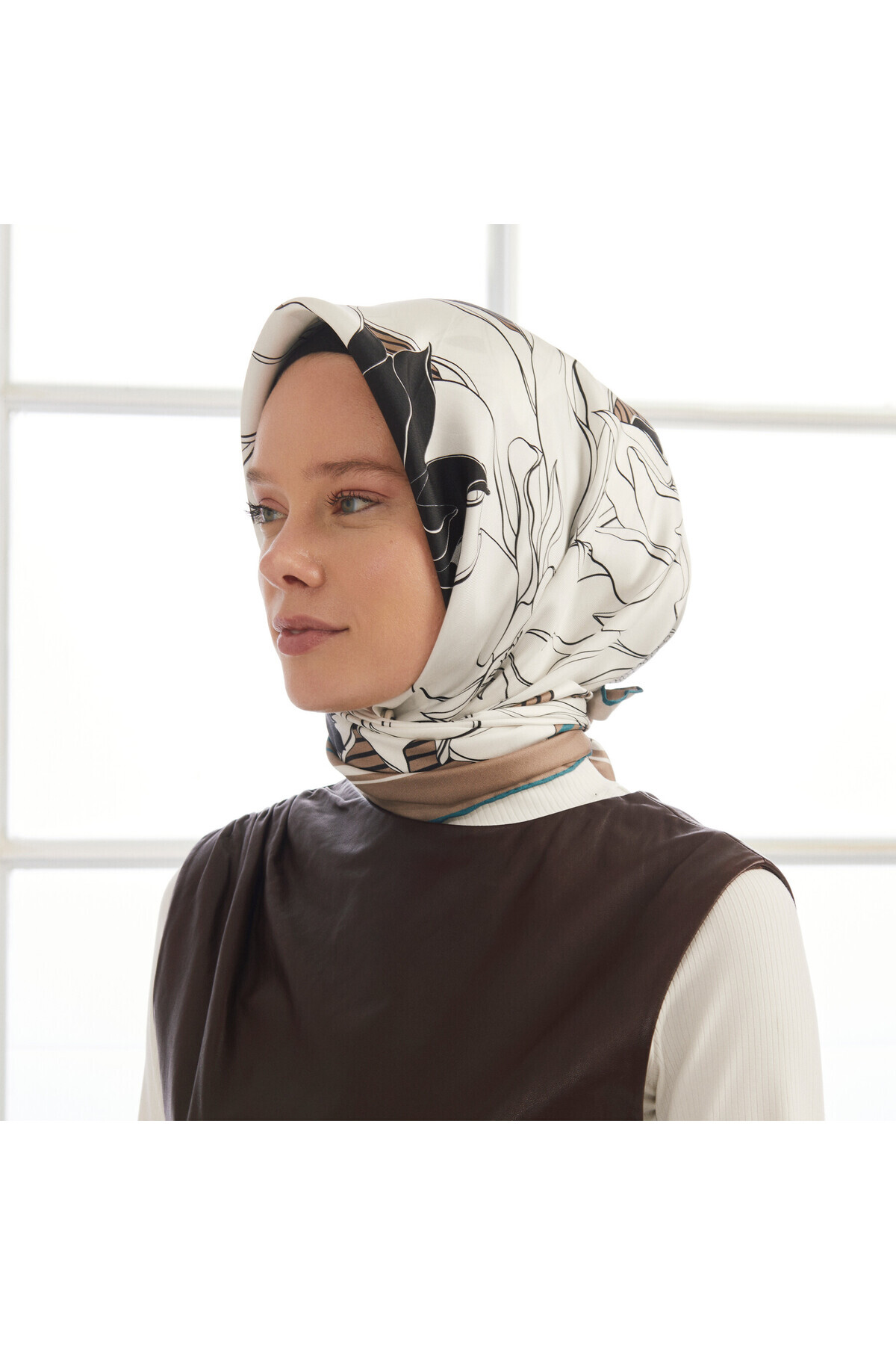 Beyaz Vizon Karakalem Tivil İpek Eşarp Beyaz Vizon Karakalem Tivil İpek Eşarp ff60-10178 تک سایز