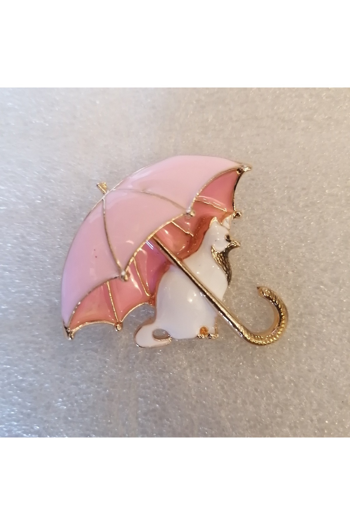 Unisex otantik el yapımı altın pembe beyaz emaye şemsiye altında kedi broş 4.2x4 cm Tayland Unisex otantik el yapımı altın pembe beyaz emaye şemsiye altında kedi broş 4.2x4 cm Tayland 5576104 تک سایز