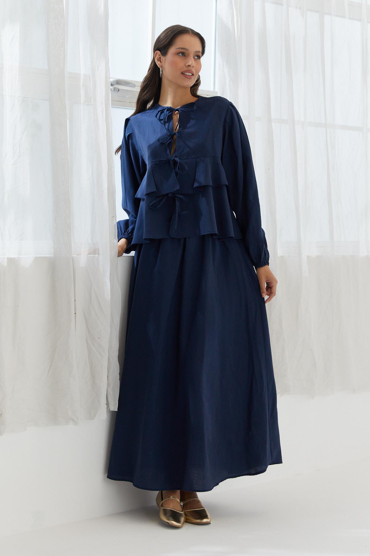 Bağcık Detaylı Etekli Tesettür Takım-LACİVERT Bağcık Detaylı Etekli Tesettür Takım-LACİVERT 8626 L/XL