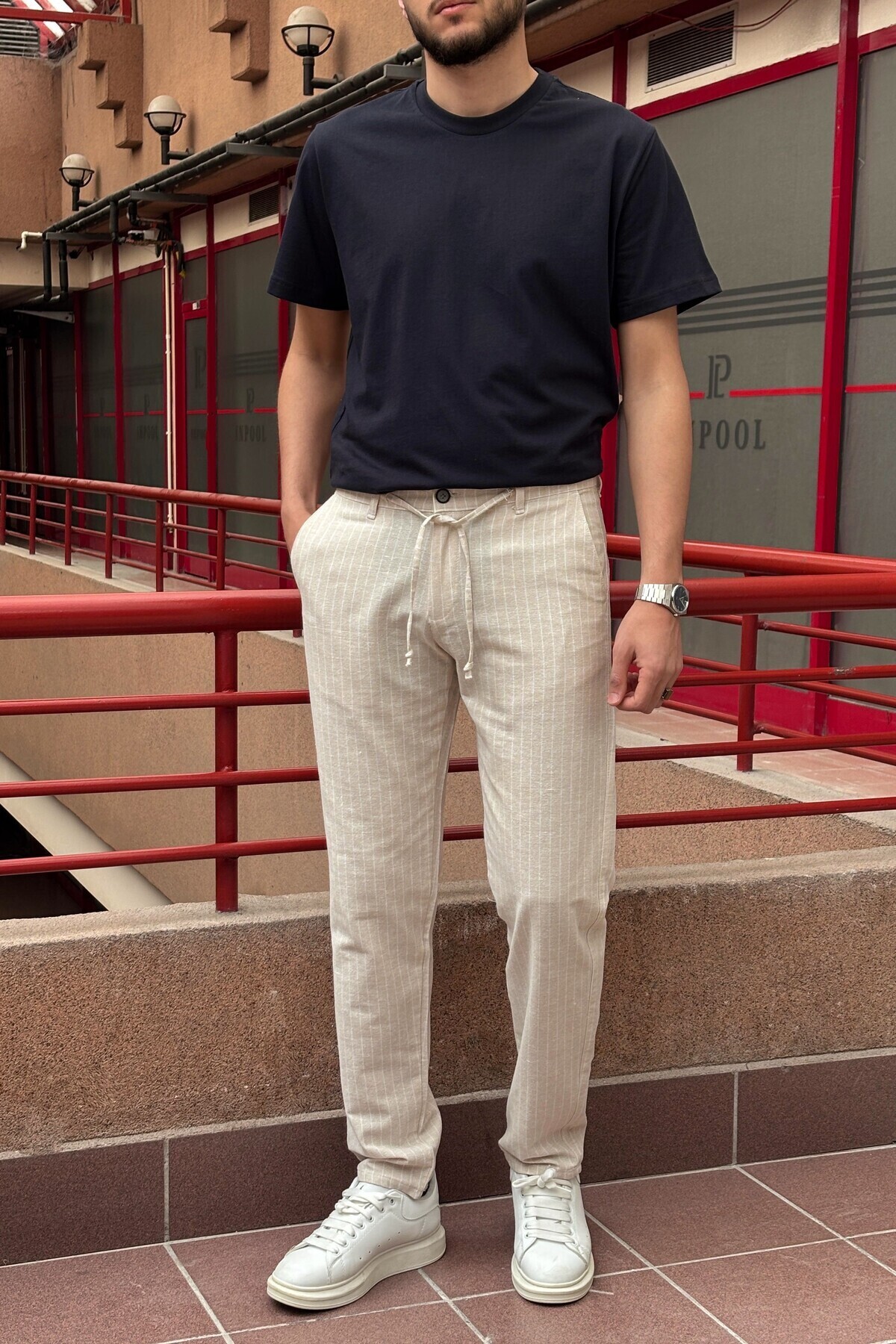 TREND BİZ Likralı Keten Kumaş Baggy Kalıp Çizgili Pantolon TREND BİZ Likralı Keten Kumaş Baggy Kalıp Çizgili Pantolon MNH25-126 2XL