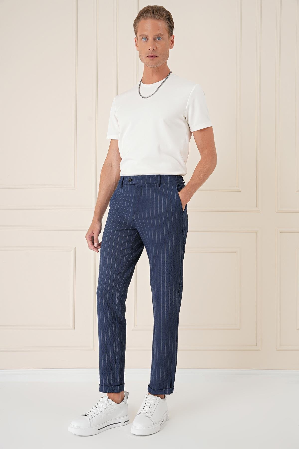 TREND BİZ Likralı Keten Kumaş Baggy Kalıp Çizgili Pantolon TREND BİZ Likralı Keten Kumaş Baggy Kalıp Çizgili Pantolon MNH25-126 2XL
