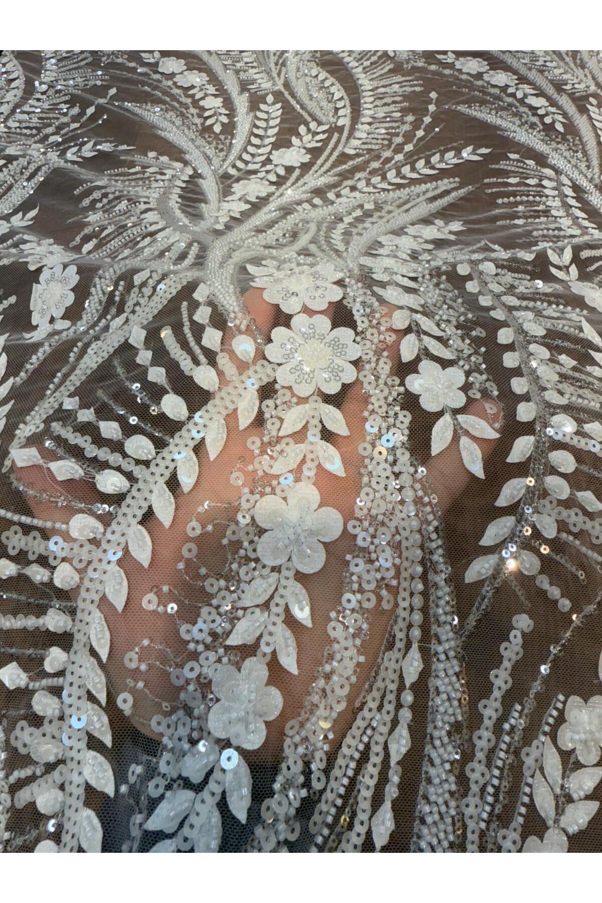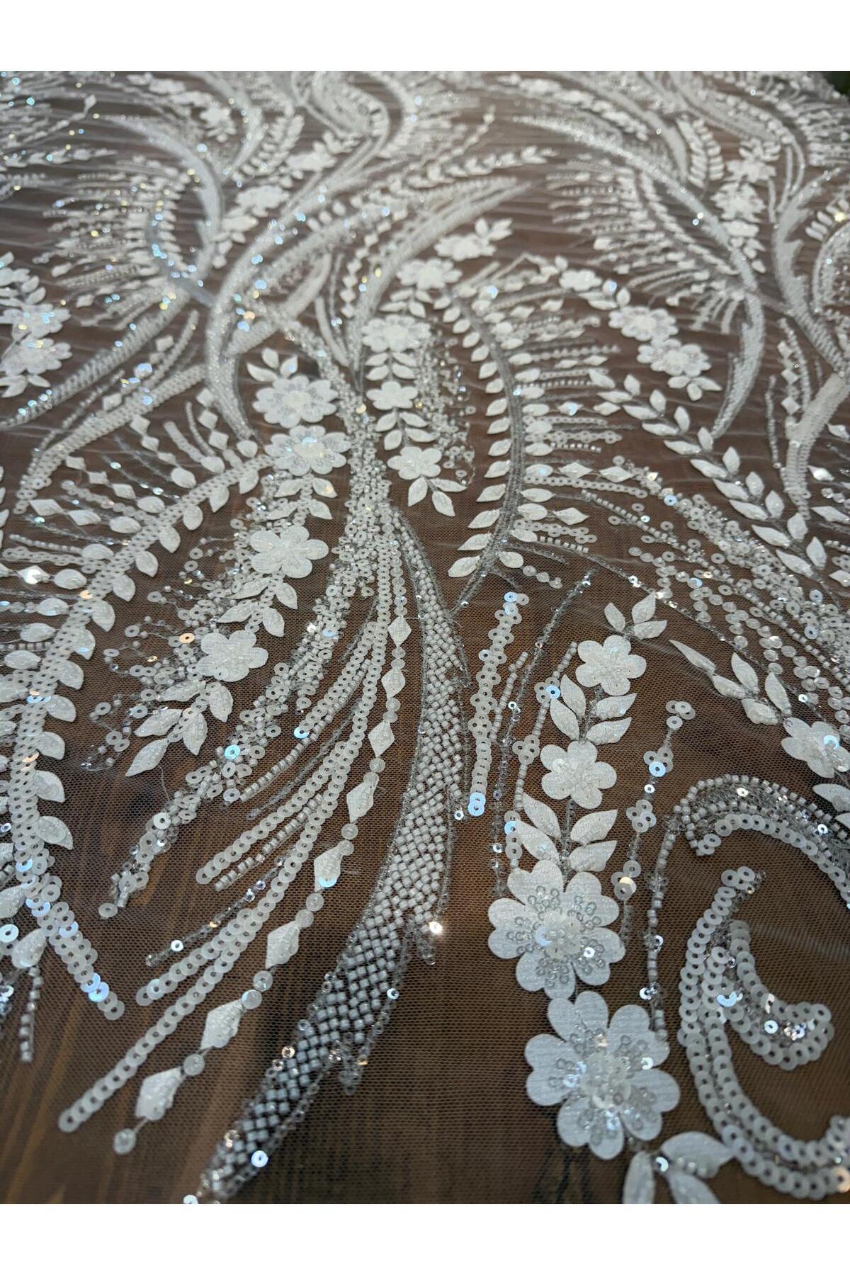 Metroteks Lüks Pul ve Taş İşlemeli Gelinlik, Nişanlık Ve Abiyelik Kumaş Metroteks Lüks Pul ve Taş İşlemeli Gelinlik, Nişanlık Ve Abiyelik Kumaş ML-005 تک سایز