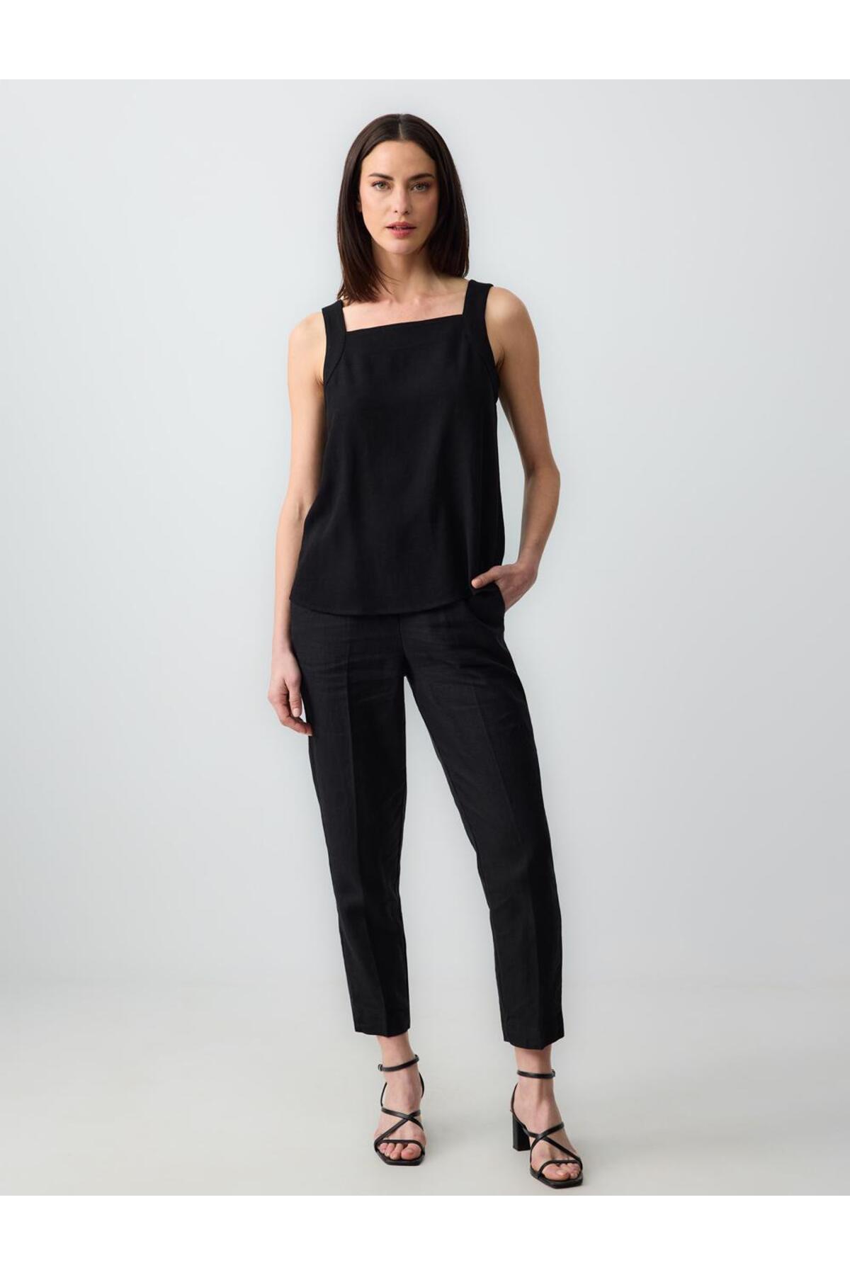 Kadın Yüksek Bel Cepli Keten İtalyan Pantolon Kadın Yüksek Bel Cepli Keten İtalyan Pantolon Wolwes0026 44