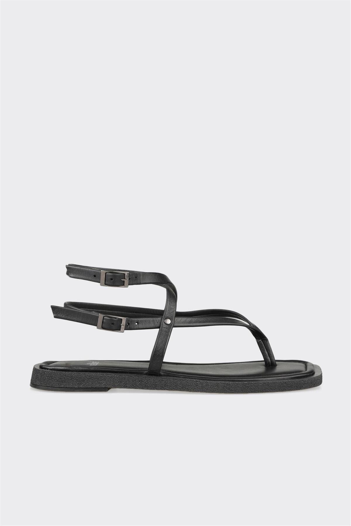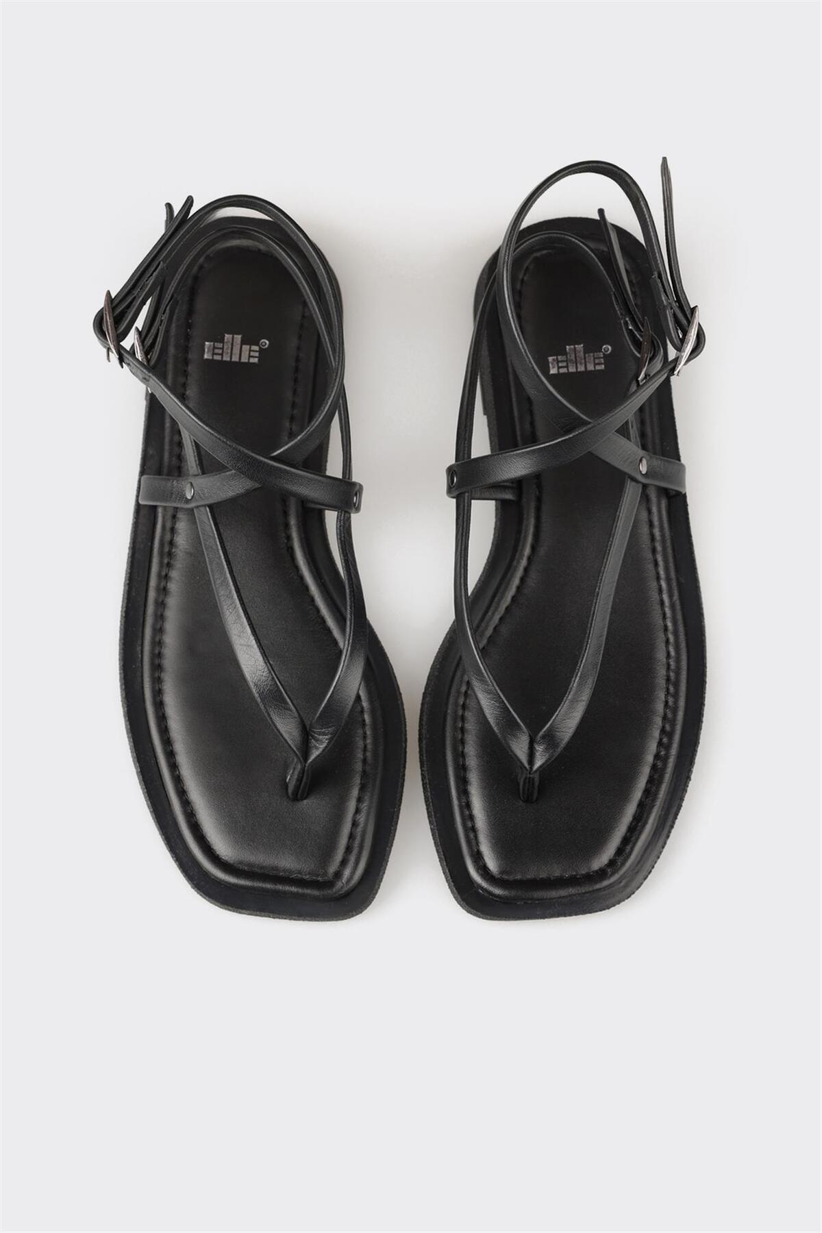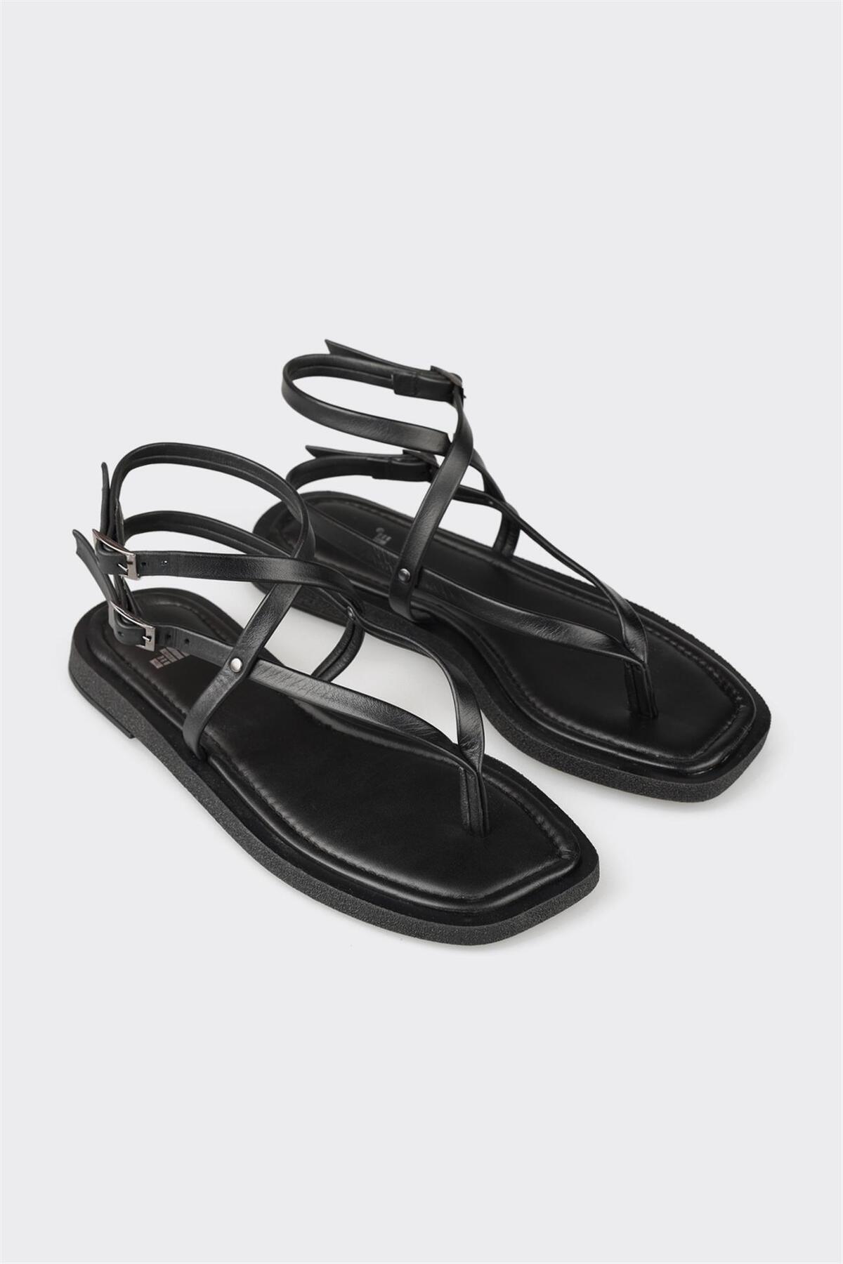 Siyah Deri Kadın Parmak Arası Sandalet Siyah Deri Kadın Parmak Arası Sandalet GURVEN 40