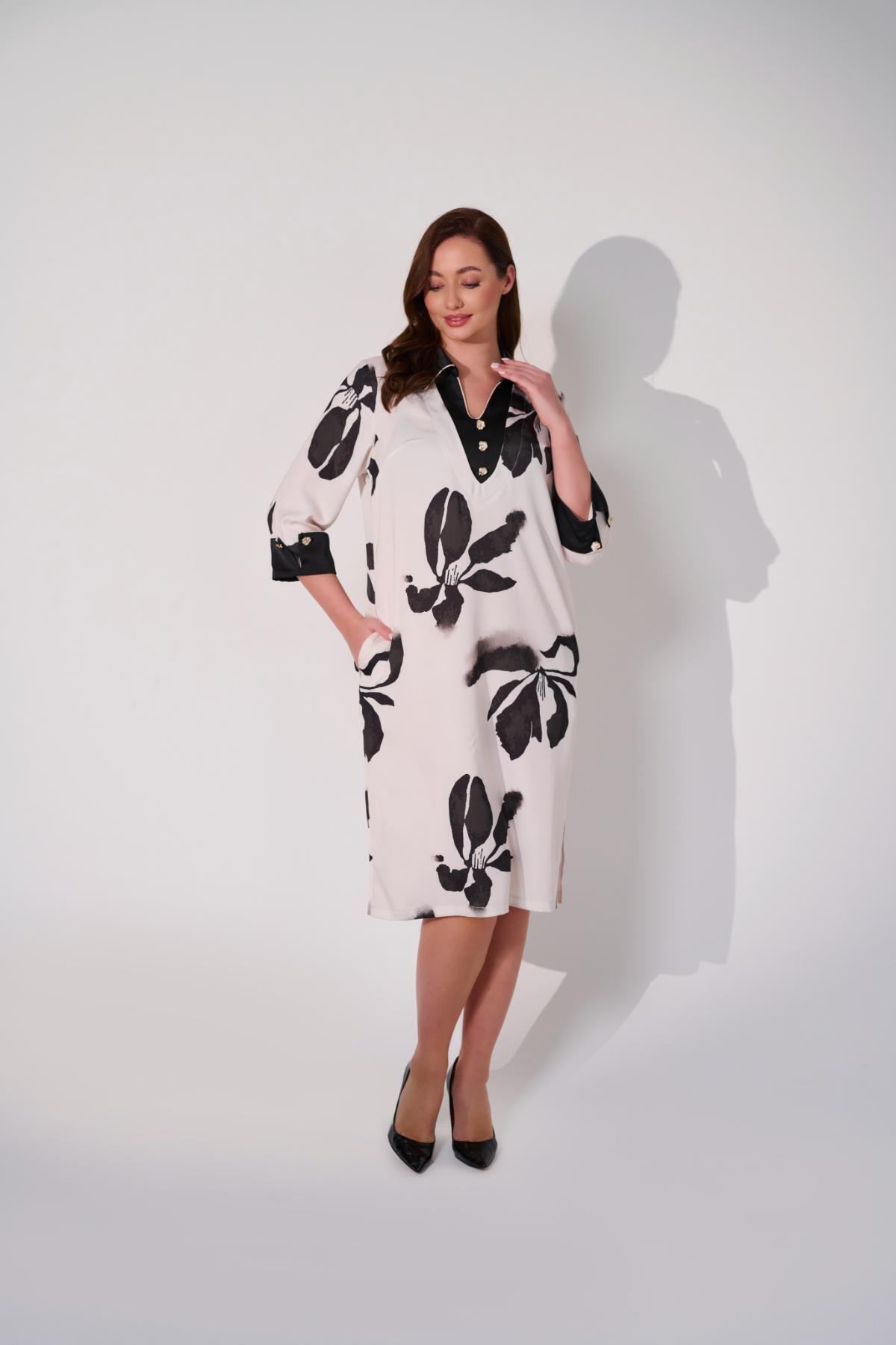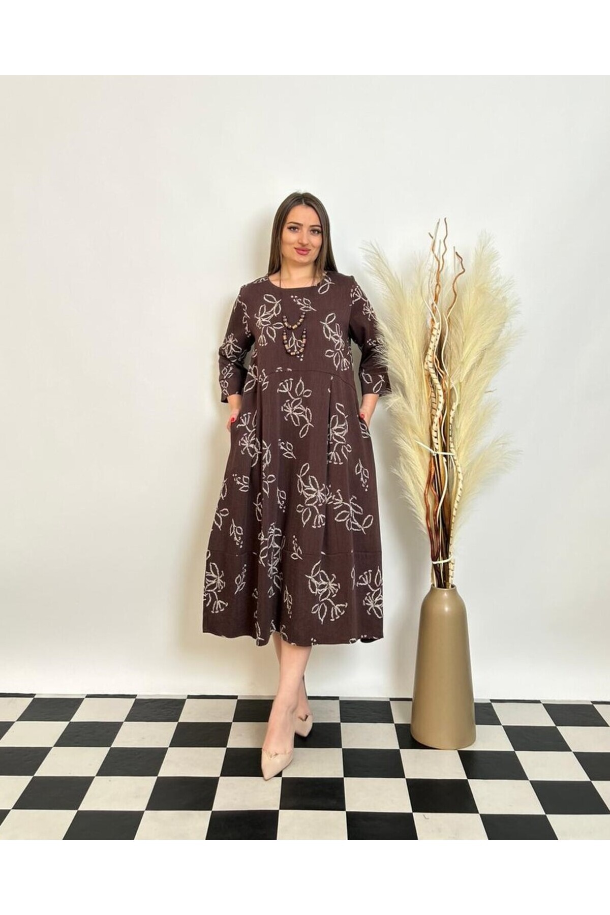 BÜYÜK BEDEN EMPİRME BSAKILI VE YAKA KOL DETAYLI ELBİSE BÜYÜK BEDEN EMPİRME BSAKILI VE YAKA KOL DETAYLI ELBİSE 12420 50