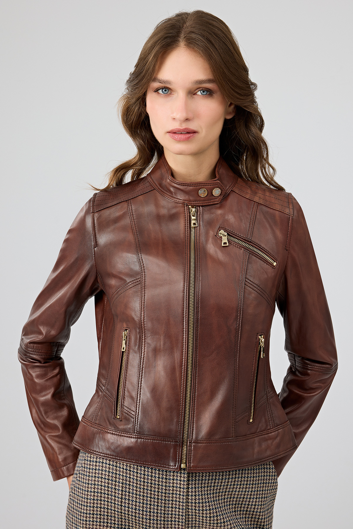 Hakiki Kuzu Derisi Fermuarlı Kemerli Kapşonlu Kadın Ceket Taba Hakiki Kuzu Derisi Fermuarlı Kemerli Kapşonlu Kadın Ceket Taba dw-04-01-59 3XL