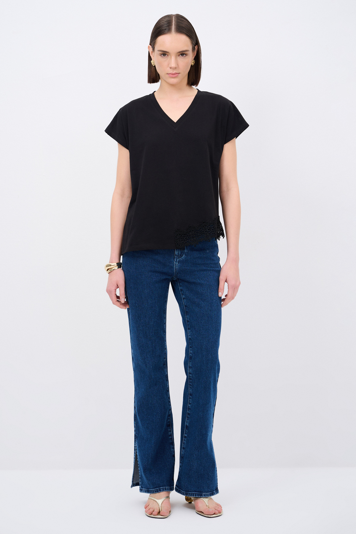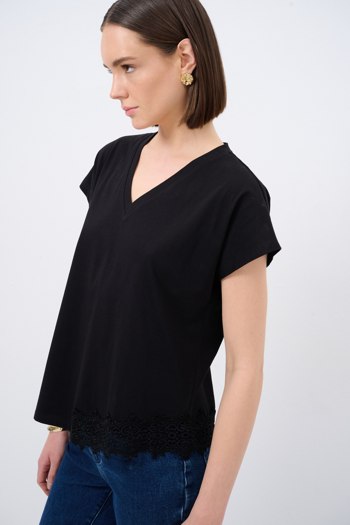 Dantel Detaylı V Yaka Tişört Dantel Detaylı V Yaka Tişört 175L8508002 48