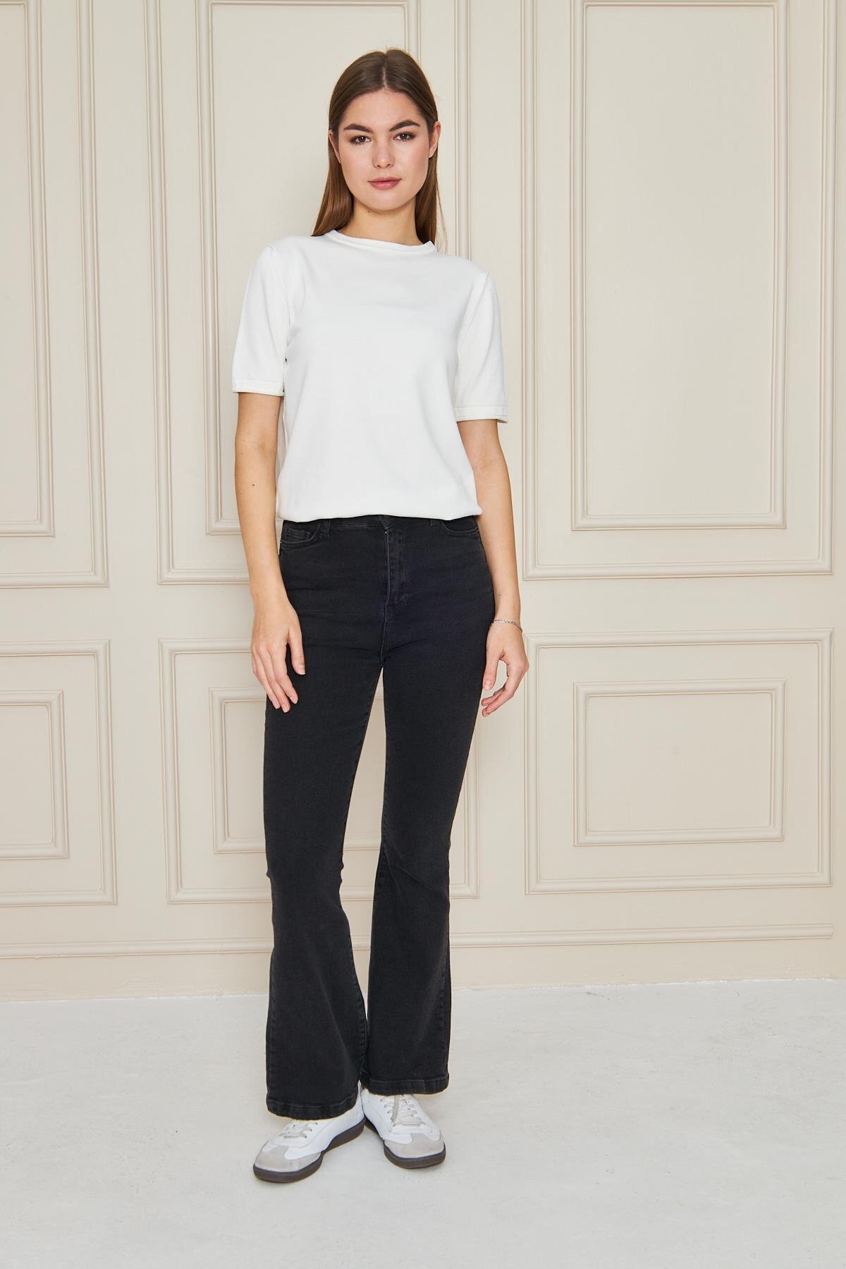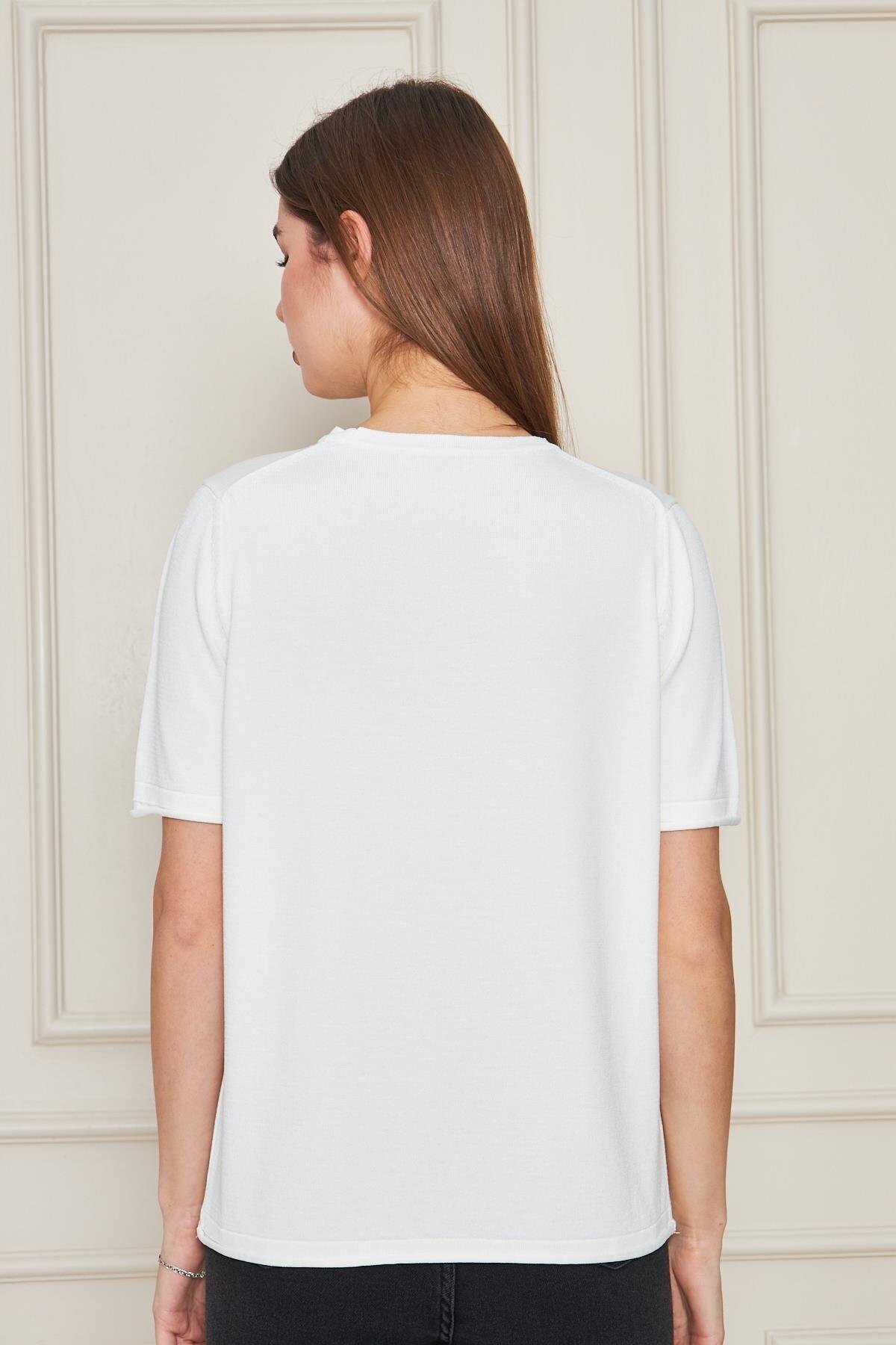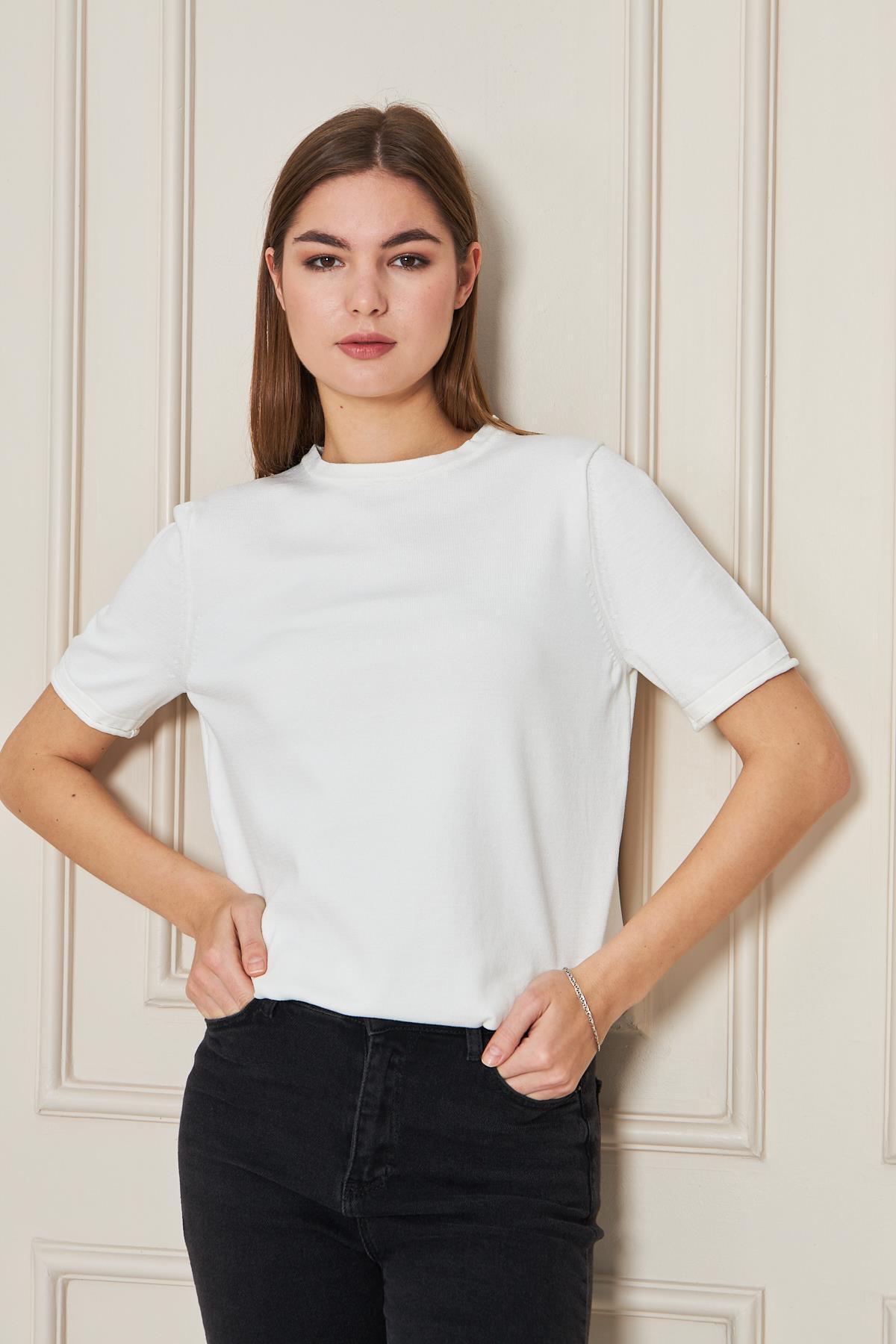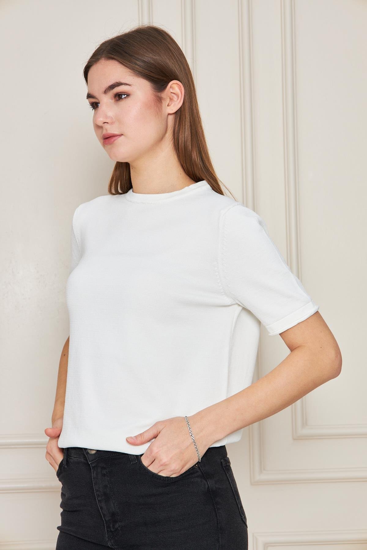 Kadın Ekru Bisiklet Yaka Kısa Kollu Triko Bluz Basic Bluz 25222 Kadın Ekru Bisiklet Yaka Kısa Kollu Triko Bluz Basic Bluz 25222 Standart
