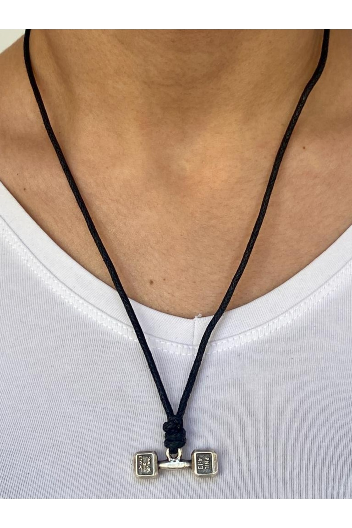 Spor Konseptli Dambıl Ağırlık Figürlü Siyah İpli Tasarım Çelik Kolye Spor Konseptli Dambıl Ağırlık Figürlü Siyah İpli Tasarım Çelik Kolye LUMI-KLY-İPLİ تک سایز