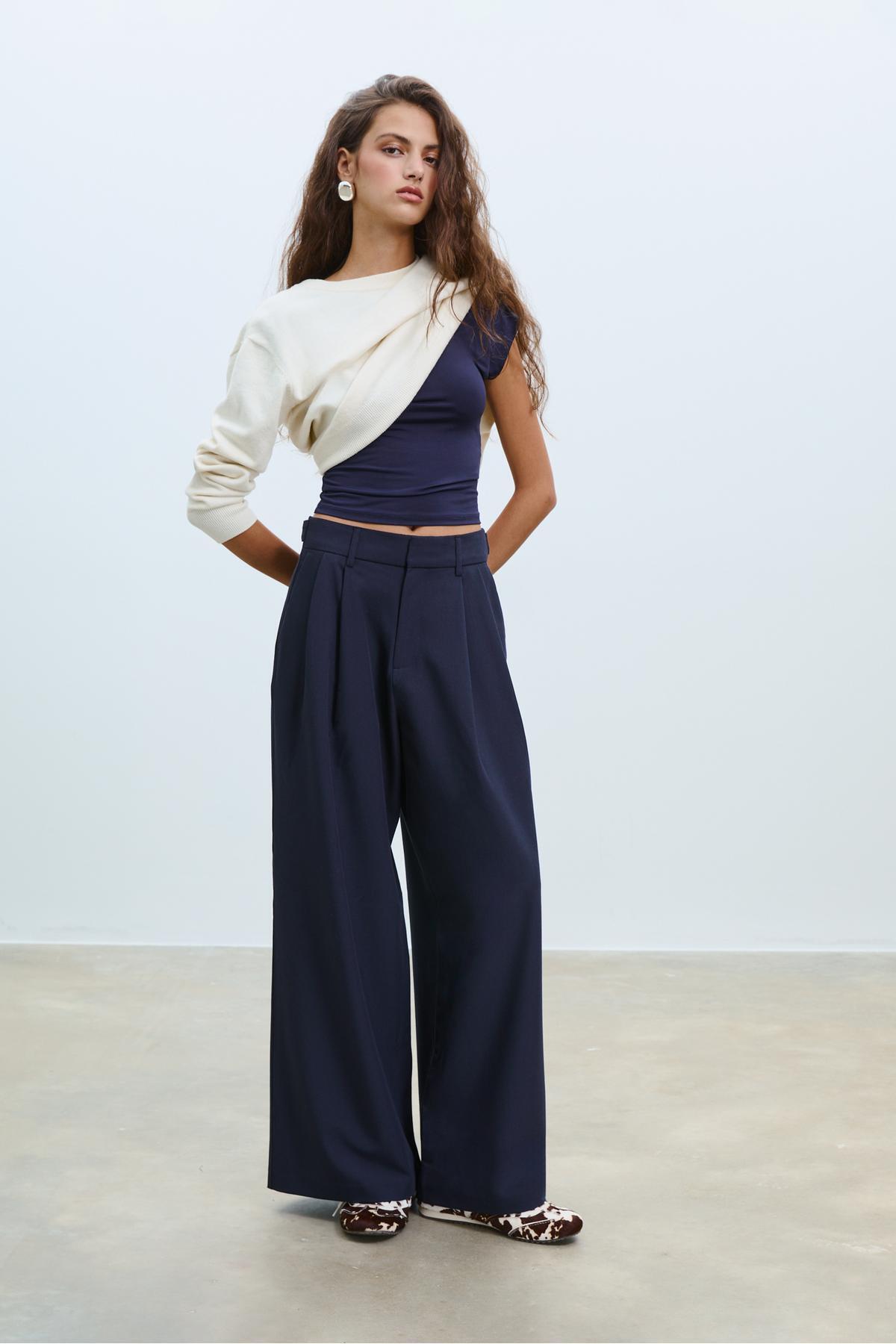 Pensli geniş paça kumaş pantolon Pensli geniş paça kumaş pantolon 08266500 44