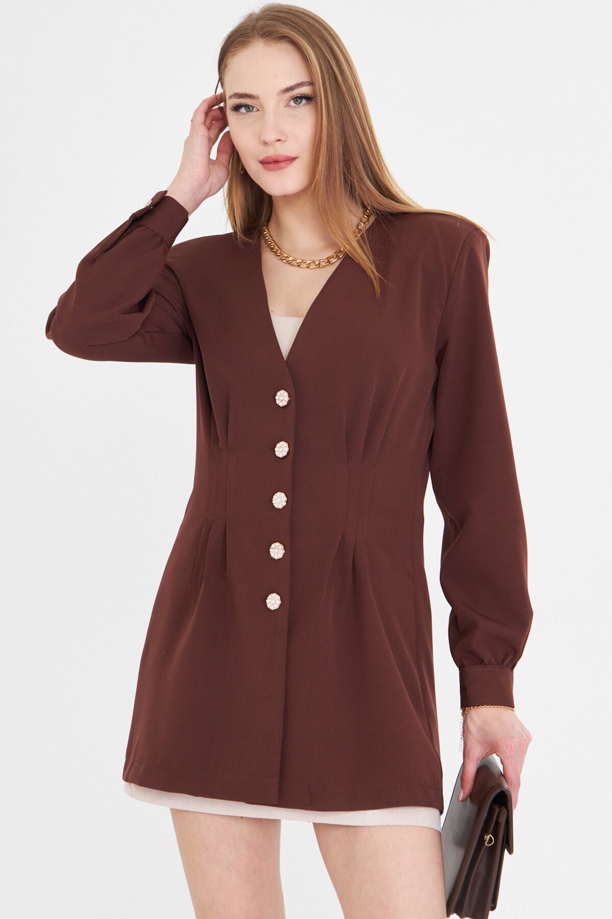 Kadın Kahve V Yaka Pile Detaylı Vücuda Oturan Vatkalı Ceket ARM-25Y001039 Kadın Kahve V Yaka Pile Detaylı Vücuda Oturan Vatkalı Ceket ARM-25Y001039 XL