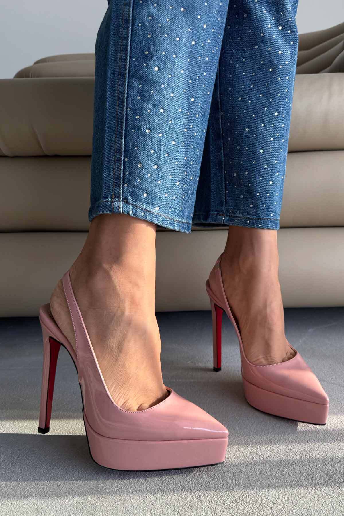 Flex Pudra Rugan 13 Cm Kadın Klasik Platform Topuklu Ayakkabı Flex Pudra Rugan 13 Cm Kadın Klasik Platform Topuklu Ayakkabı AP-M03221 40