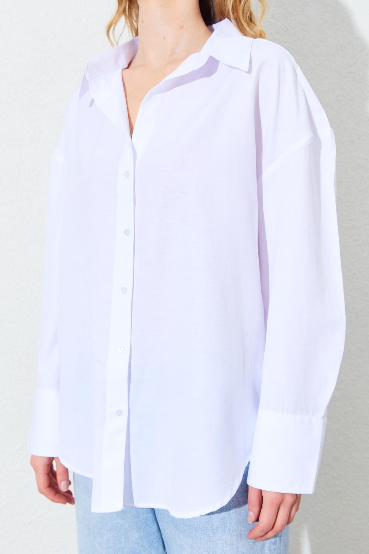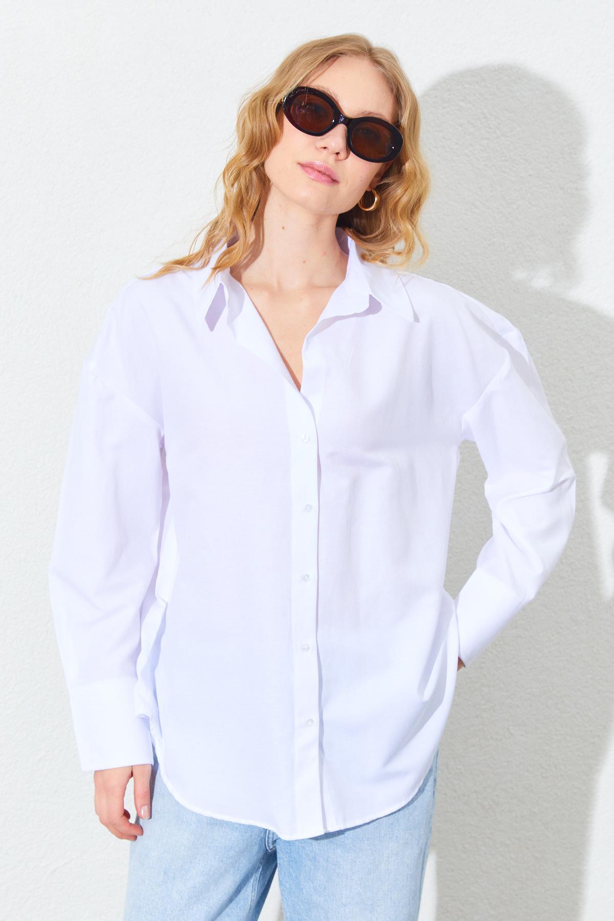 Kadın Beyaz Kalın Manşetli Basic Gömlek Kadın Beyaz Kalın Manşetli Basic Gömlek 5YKG16-7422 L