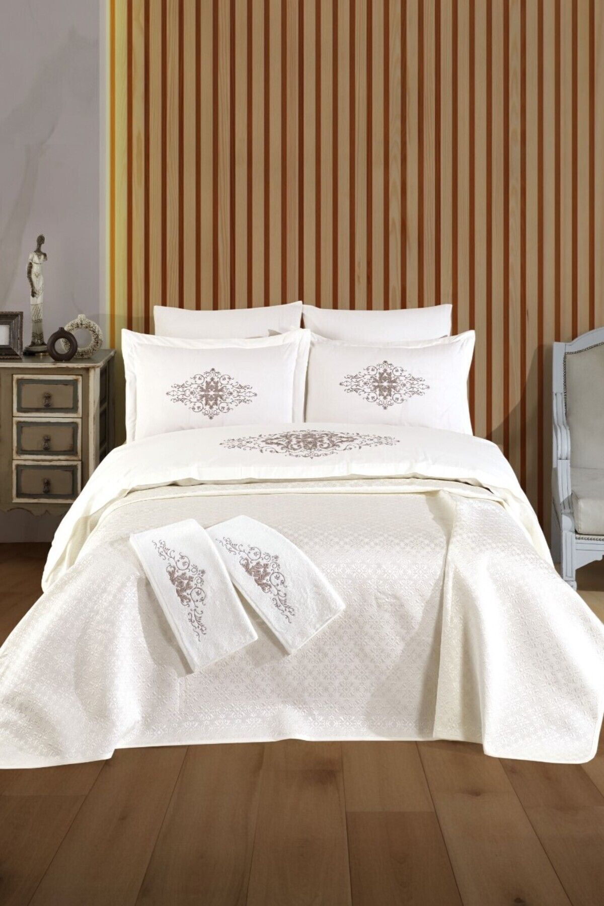 Tivoli Kabartma Nakışlı Pike Takımı Havlulu 8 Parça - Diana - Krem Tivoli Kabartma Nakışlı Pike Takımı Havlulu 8 Parça - Diana - Krem 55-2221 تک سایز