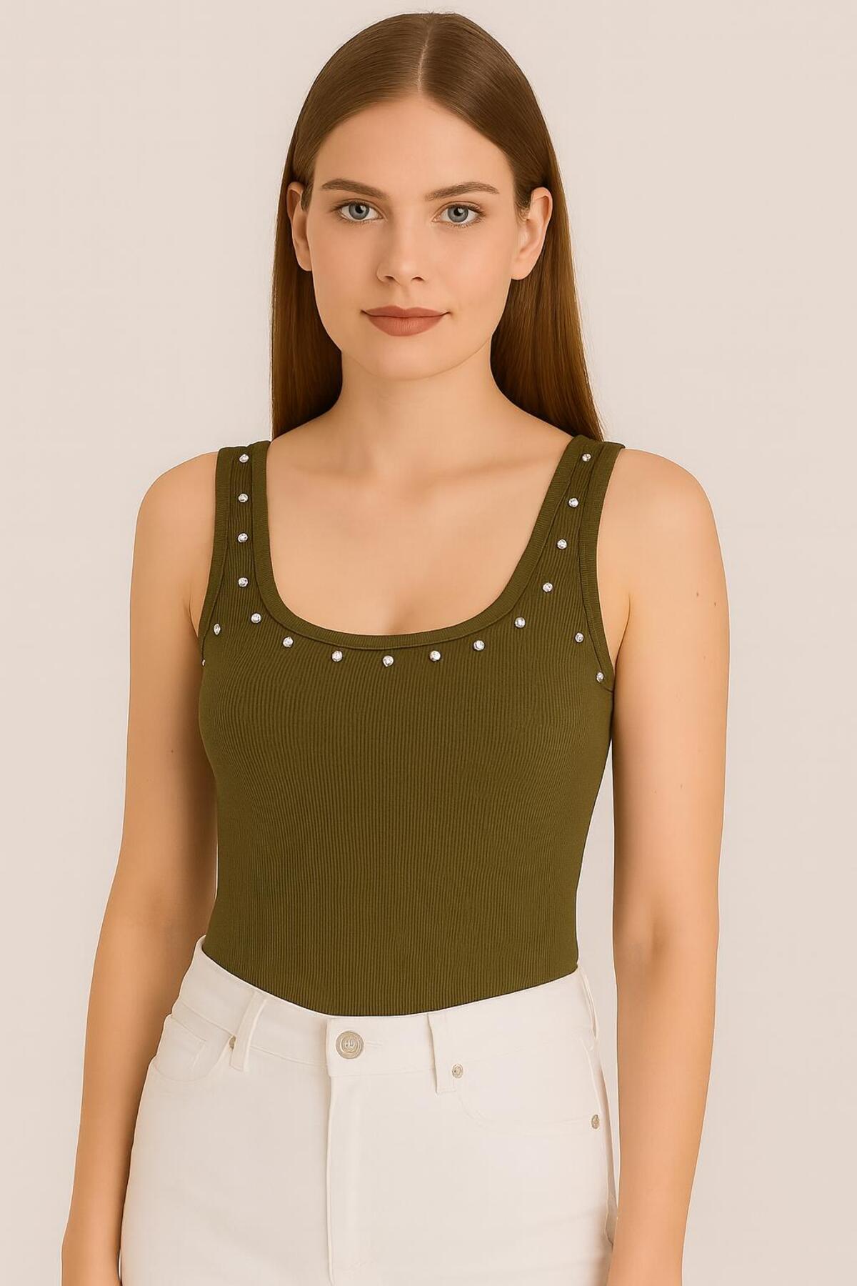 Taş Aksesuar Detaylı Slim Fit Basic Atlet Taş Aksesuar Detaylı Slim Fit Basic Atlet 25049 Atlet 40