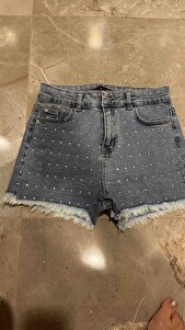Yüksek Bel Açık Mavi Kadın Taş Detaylı Likralı Kot Şort Yüksek Bel Açık Mavi Kadın Taş Detaylı Likralı Kot Şort KadınSlimFitMaviİnciDetaylıKotŞort 2XL