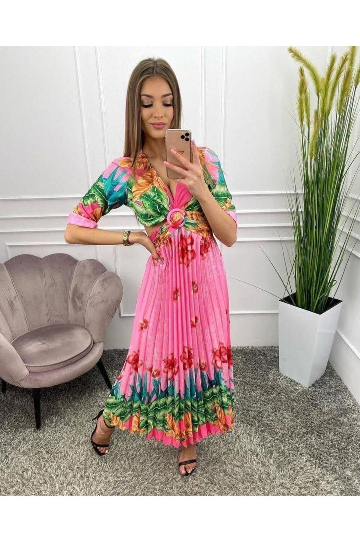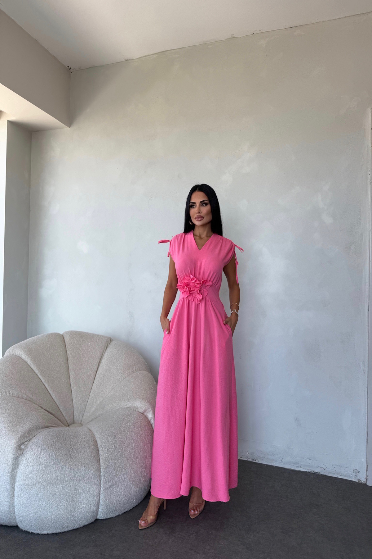 Fuchsia Satin Dress with Slit Detail Fuchsia Satin Dress with Slit Detail Y25GE090 L