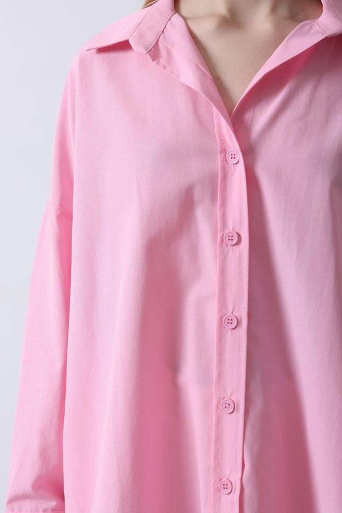 Oversize Geniş Manşet Detaylı Uzun Gömlek Oversize Geniş Manşet Detaylı Uzun Gömlek 34121 L