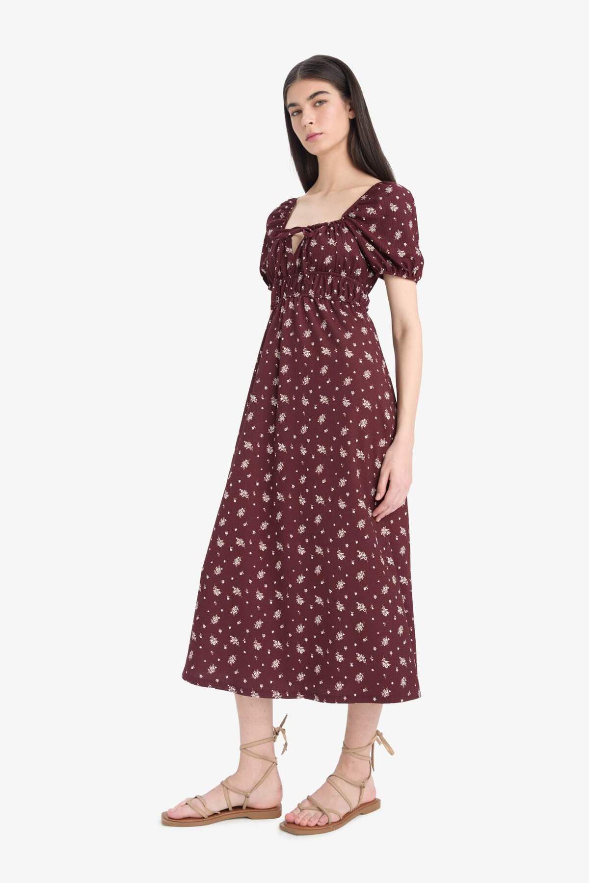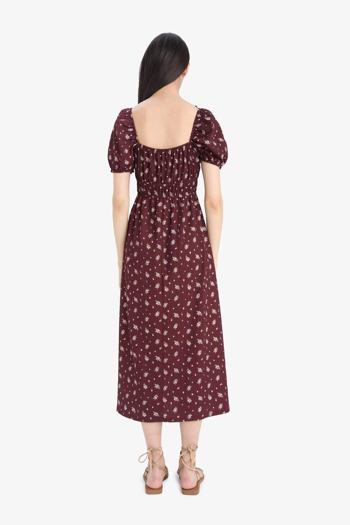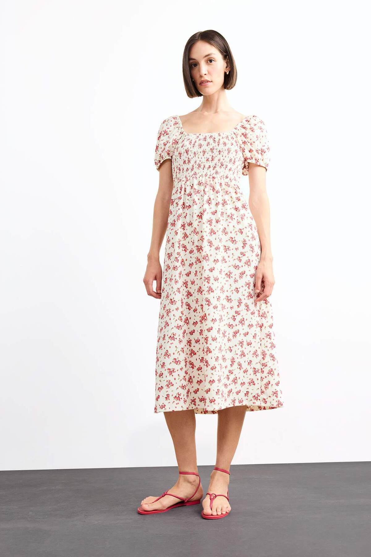 Kare Yaka Çiçekli Bürümcük Kısa Kollu Midi Elbise E5927AX25SP Kare Yaka Çiçekli Bürümcük Kısa Kollu Midi Elbise E5927AX25SP 2XL