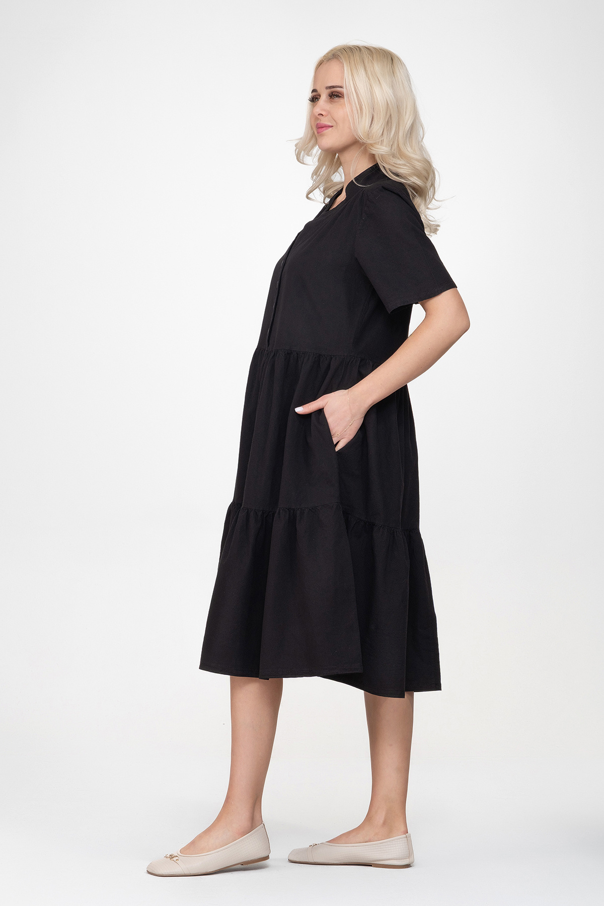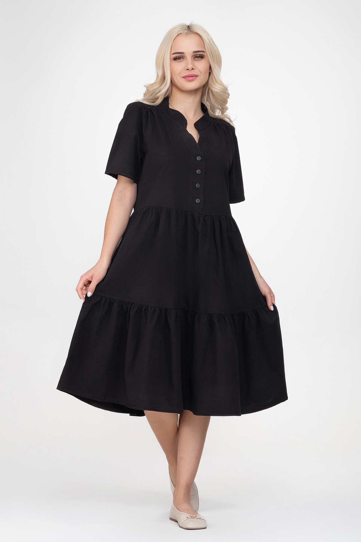 Kadın Cepli Kısa Kollu Yarım Pat Düğmeli Büzgülü Pamuklu Elbise Kadın Cepli Kısa Kollu Yarım Pat Düğmeli Büzgülü Pamuklu Elbise 9070 3XL