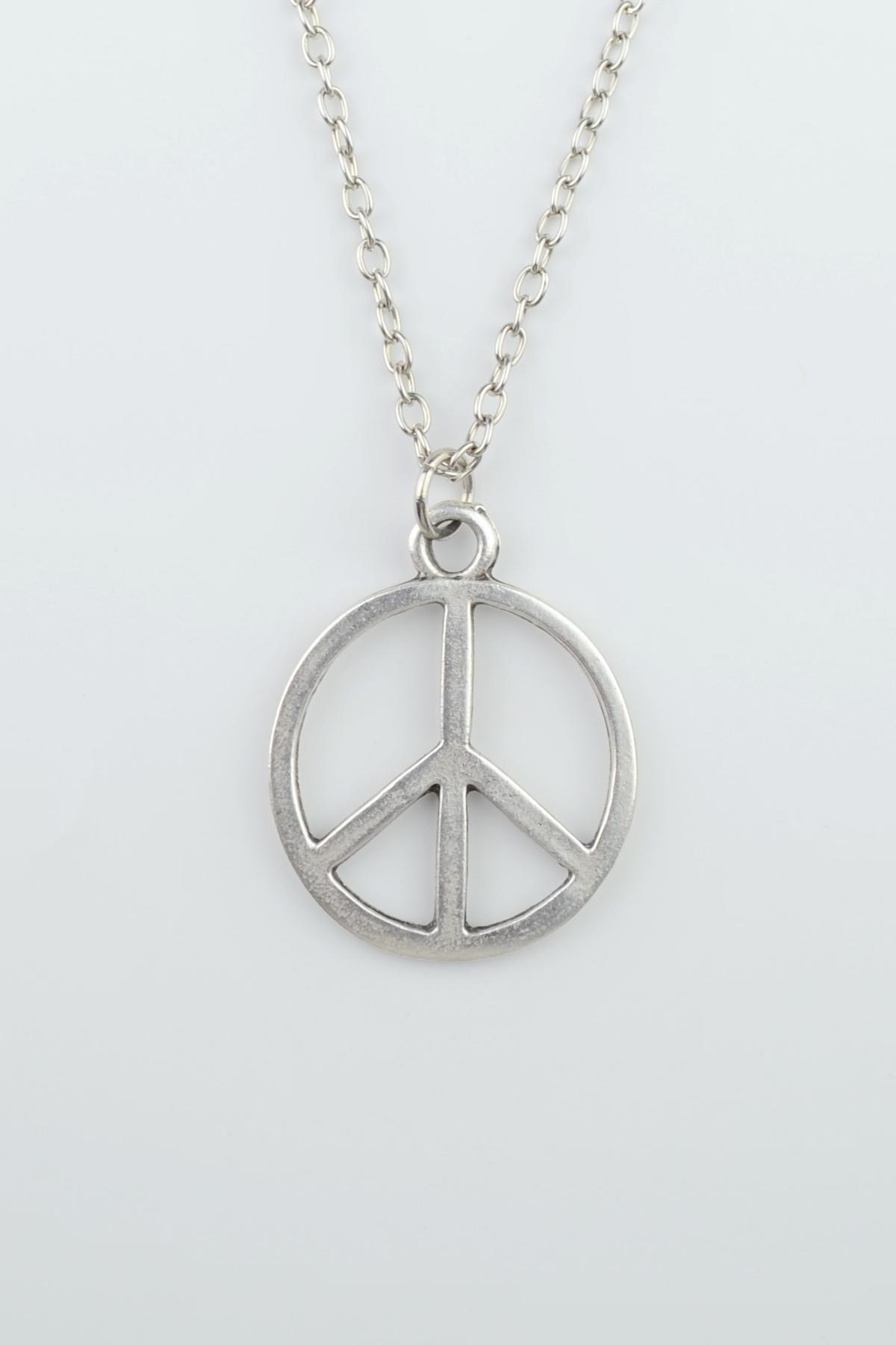 Barış İşareti Sembol Peace Kolye - Gümüş Renk Klasik Zincirli Barış İşareti Sembol Peace Kolye - Gümüş Renk Klasik Zincirli R00024-1 65 cm