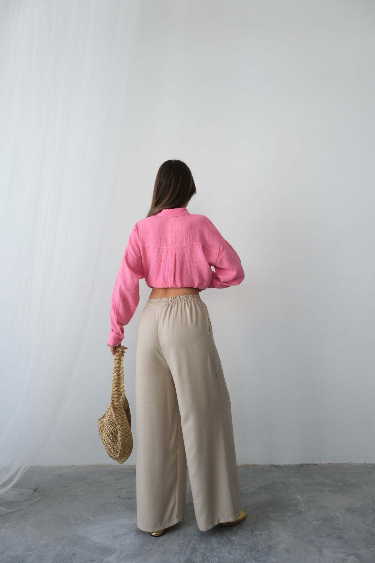 Yazlık Rahat Kesim Yüksek Bel Ip Bağcıklı Bol Paça Salaş Palazzo Pantolon - Bej Yazlık Rahat Kesim Yüksek Bel Ip Bağcıklı Bol Paça Salaş Palazzo Pantolon - Bej 5188 L/XL