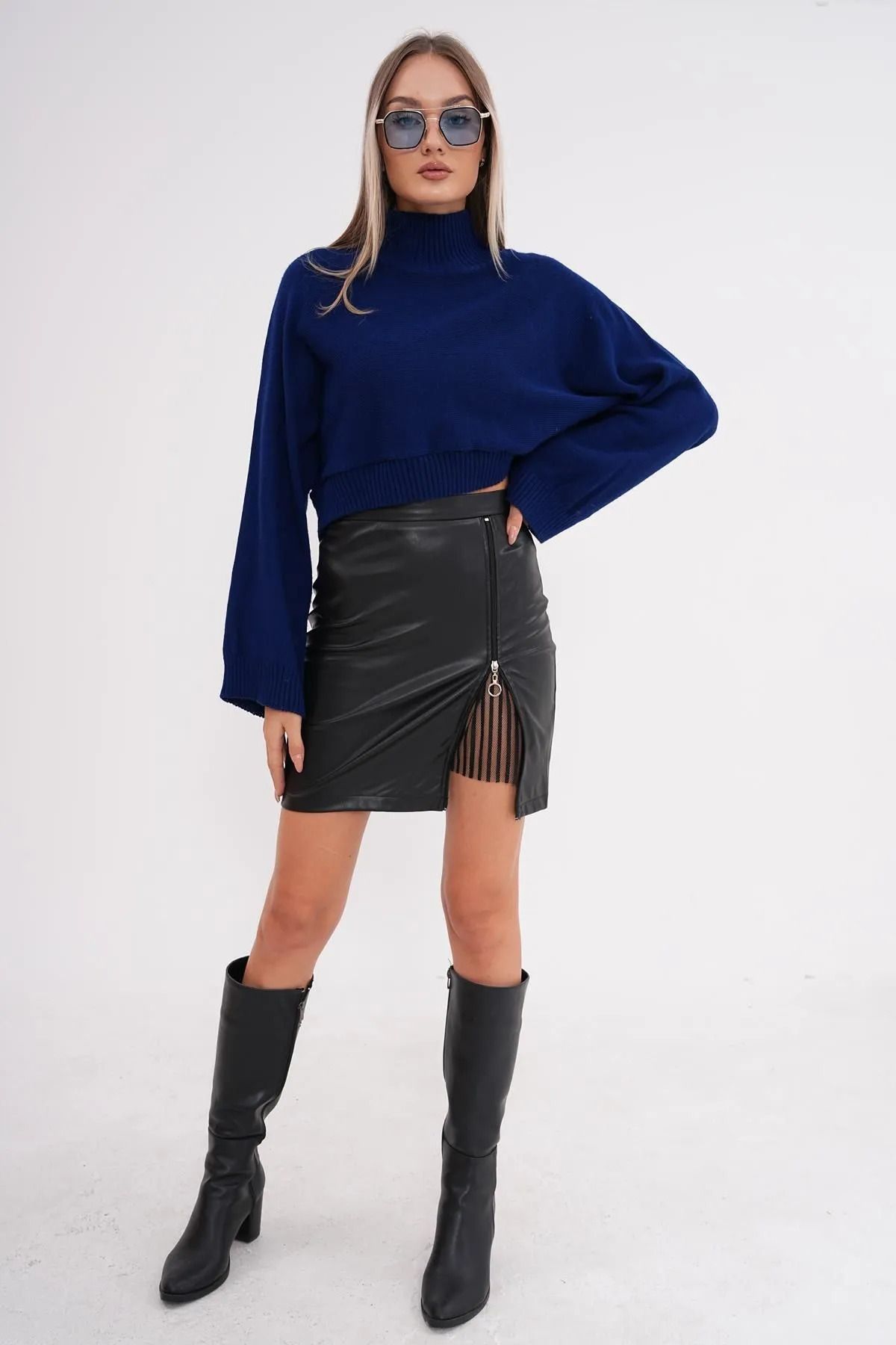 Dantel Detaylı Yırtmaçlı Kısa Deri Etek - Fermuarlı Dantel Detaylı Yırtmaçlı Kısa Deri Etek - Fermuarlı DRTK1006-1 L