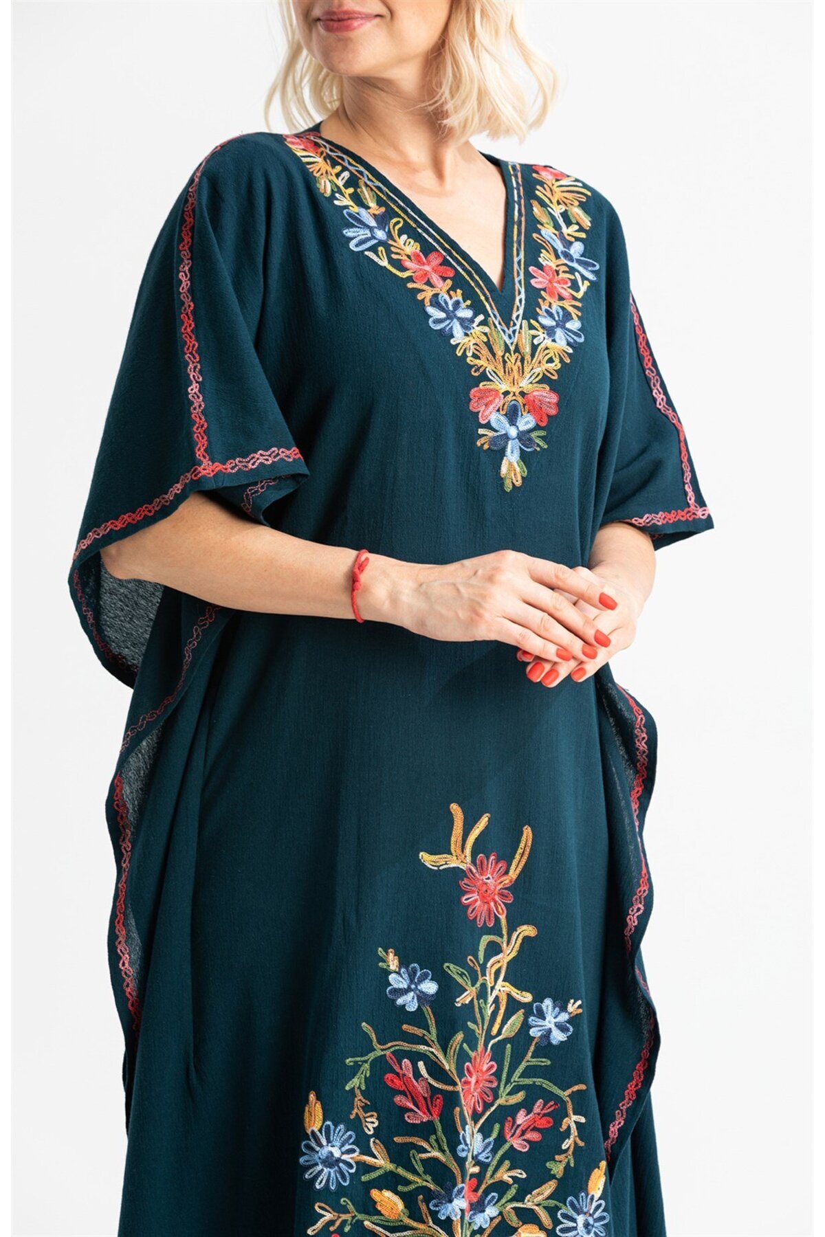 Kısa Kol Şile Bezi Tibet Uzun Yazlık Otantik Elbise Petrol Ptrl Kısa Kol Şile Bezi Tibet Uzun Yazlık Otantik Elbise Petrol Ptrl 221.02 XL