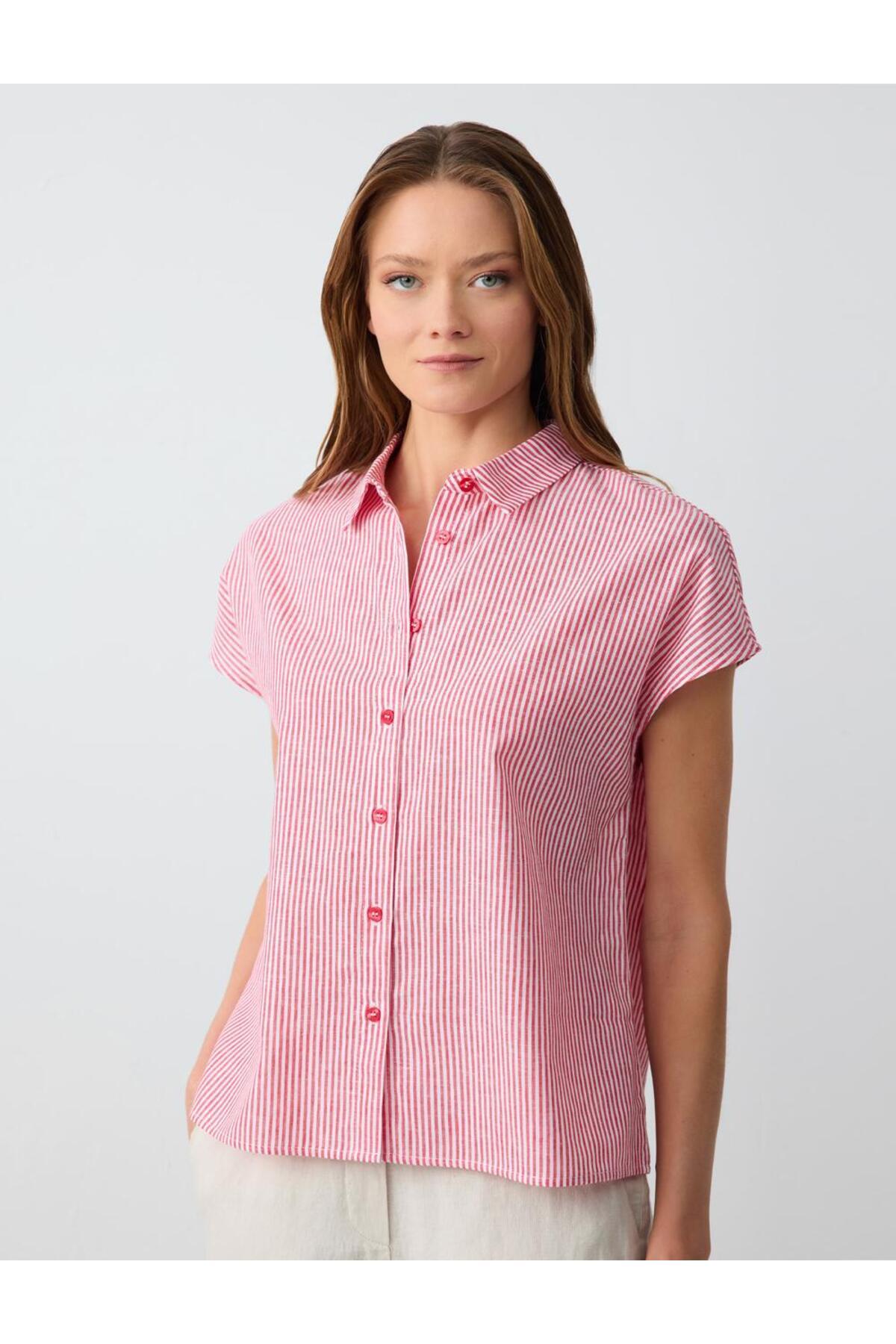 Taş Kısa Kollu Düz Kesim Keten Karışımlı Gömlek Taş Kısa Kollu Düz Kesim Keten Karışımlı Gömlek 5SW083627 XL
