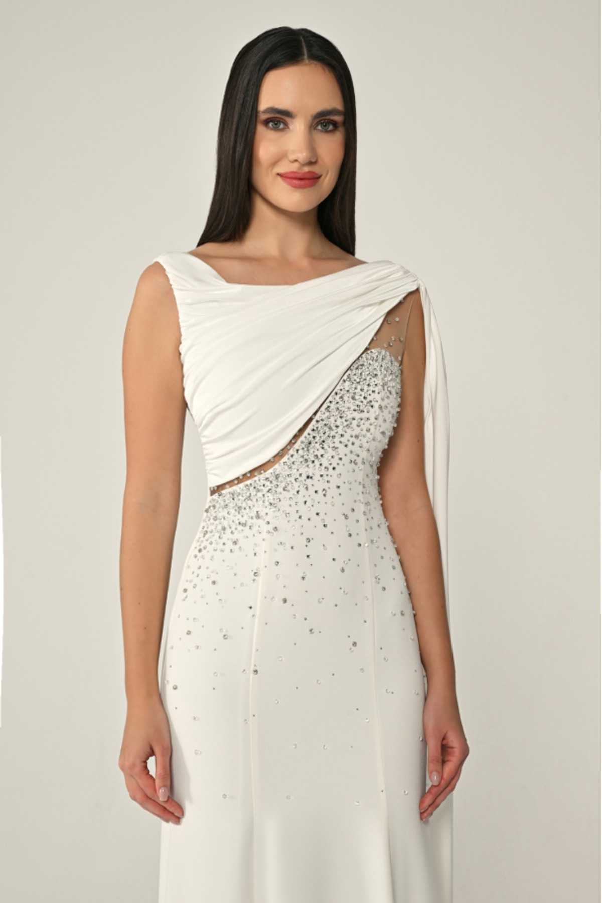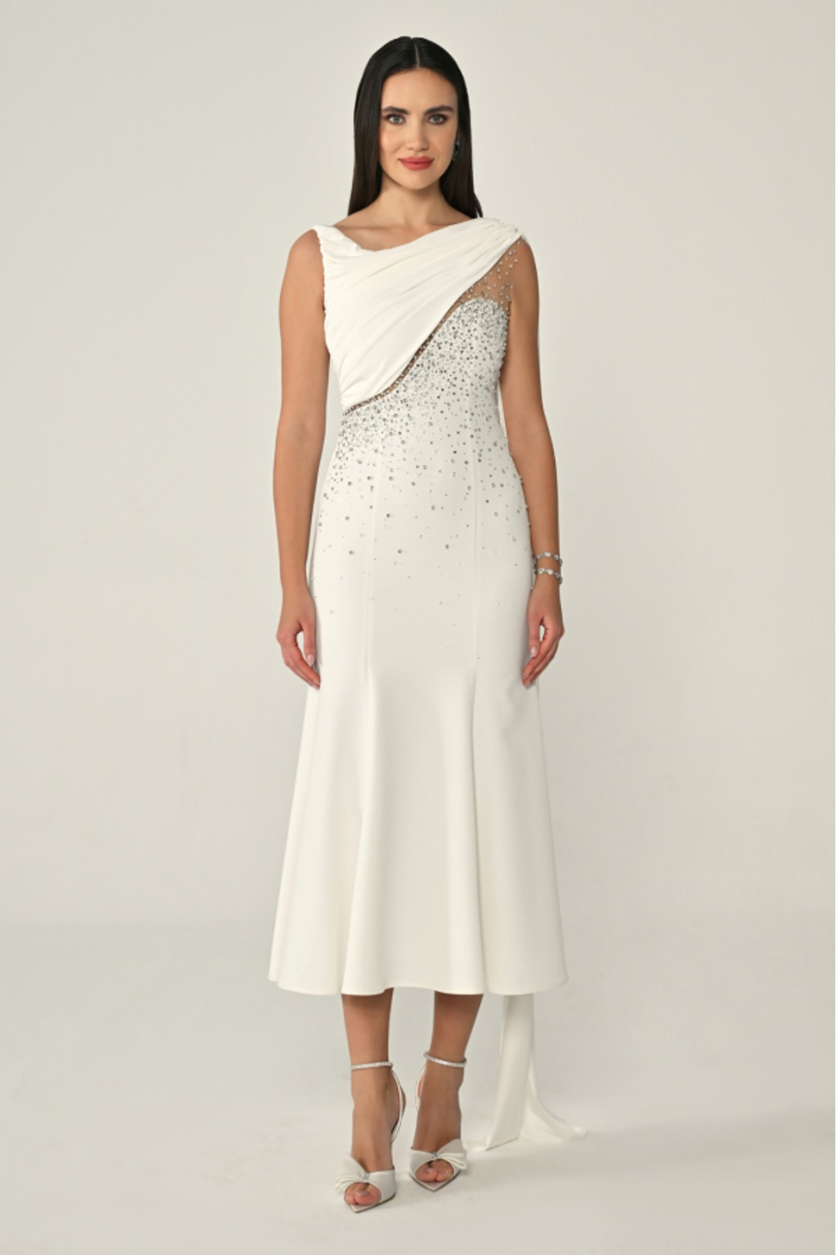 KADIN ABİYE ŞAL AKSESUARLI TAŞLI KREP ŞIK MİDİ ELBİSE KADIN ABİYE ŞAL AKSESUARLI TAŞLI KREP ŞIK MİDİ ELBİSE 7033 42