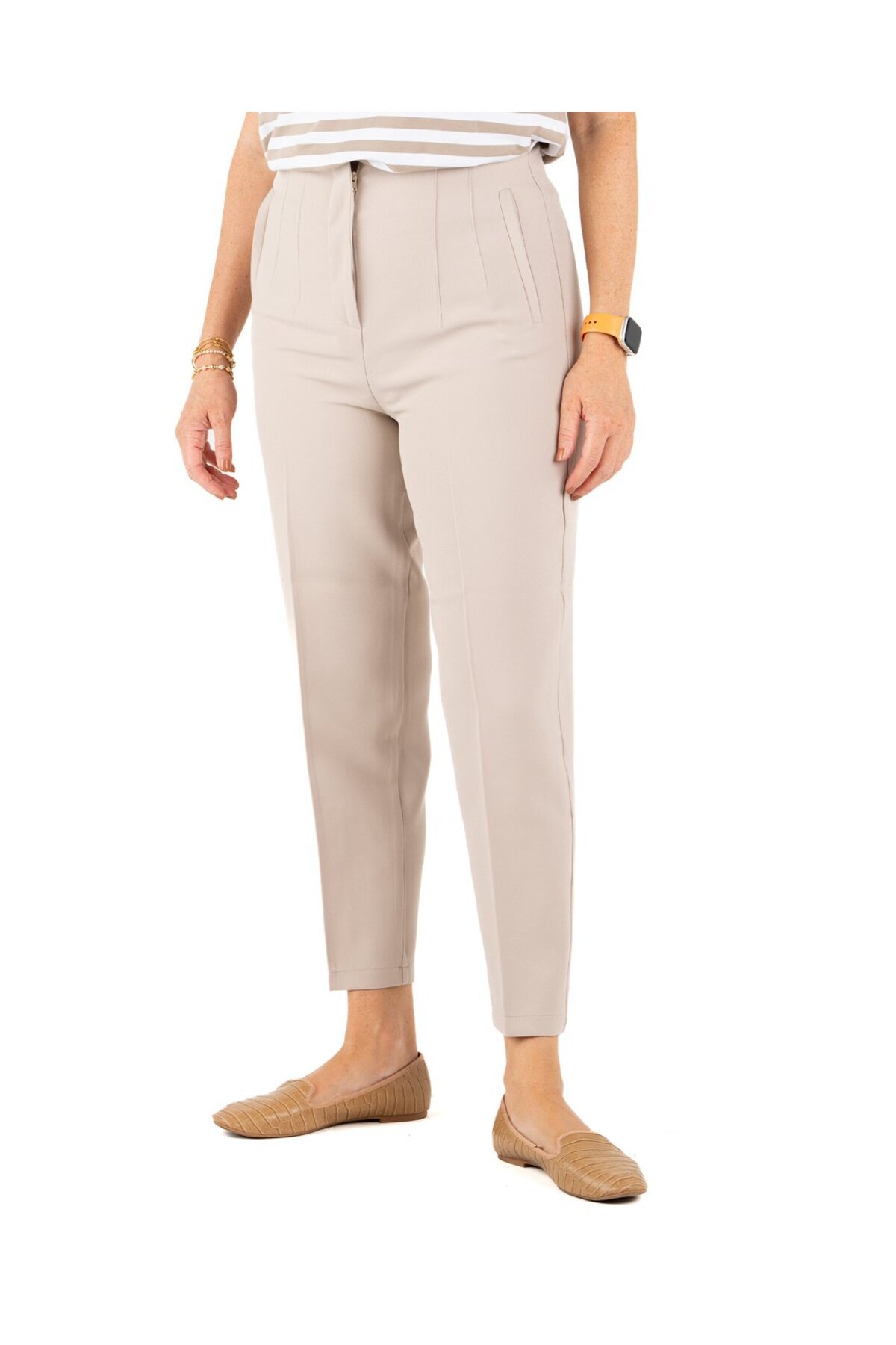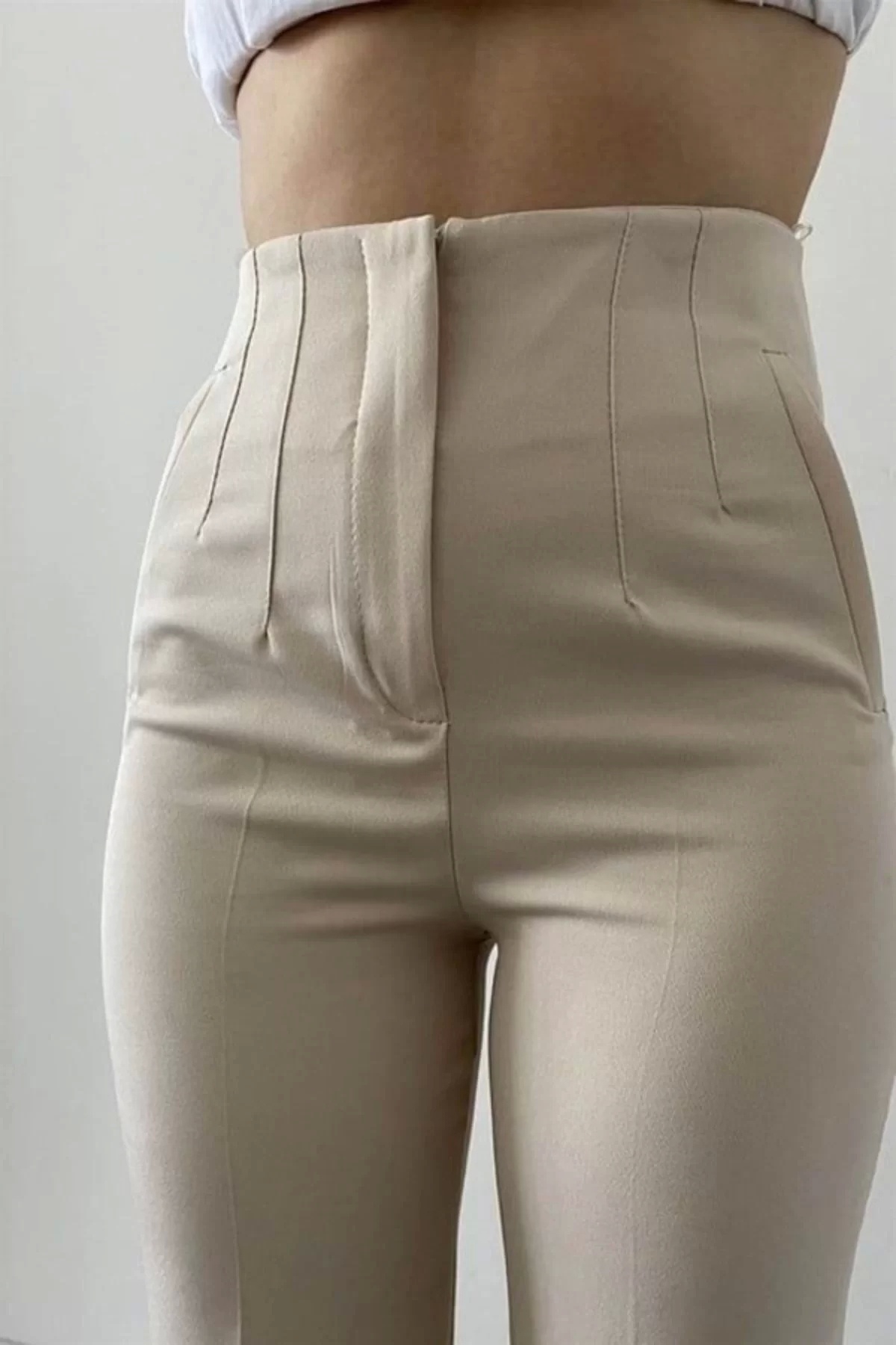 Taş rengi beli lastikli pantolon Taş rengi beli lastikli pantolon 124 XXL/T